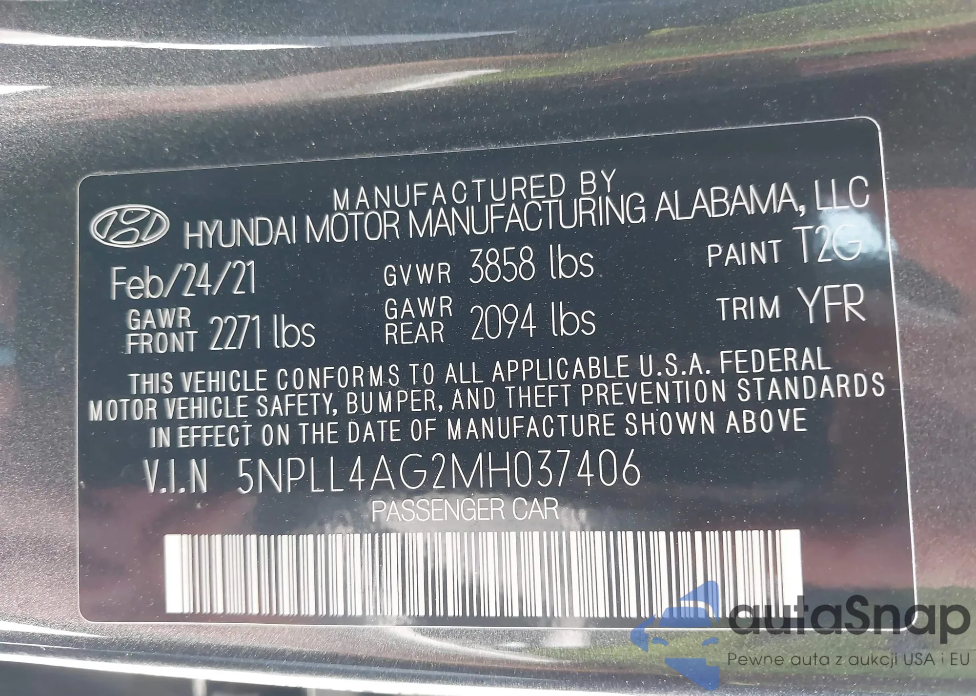 LOT: 42033498 VIN: 5NPLL4AG2MH037406