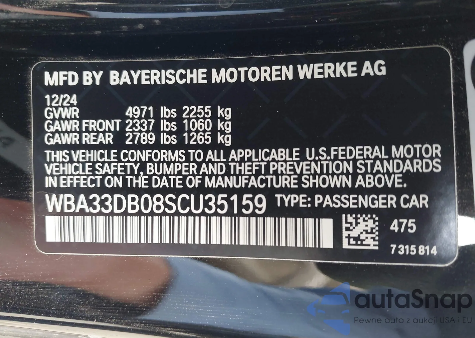LOT: 42019631 VIN: WBA33DB08SCU35159