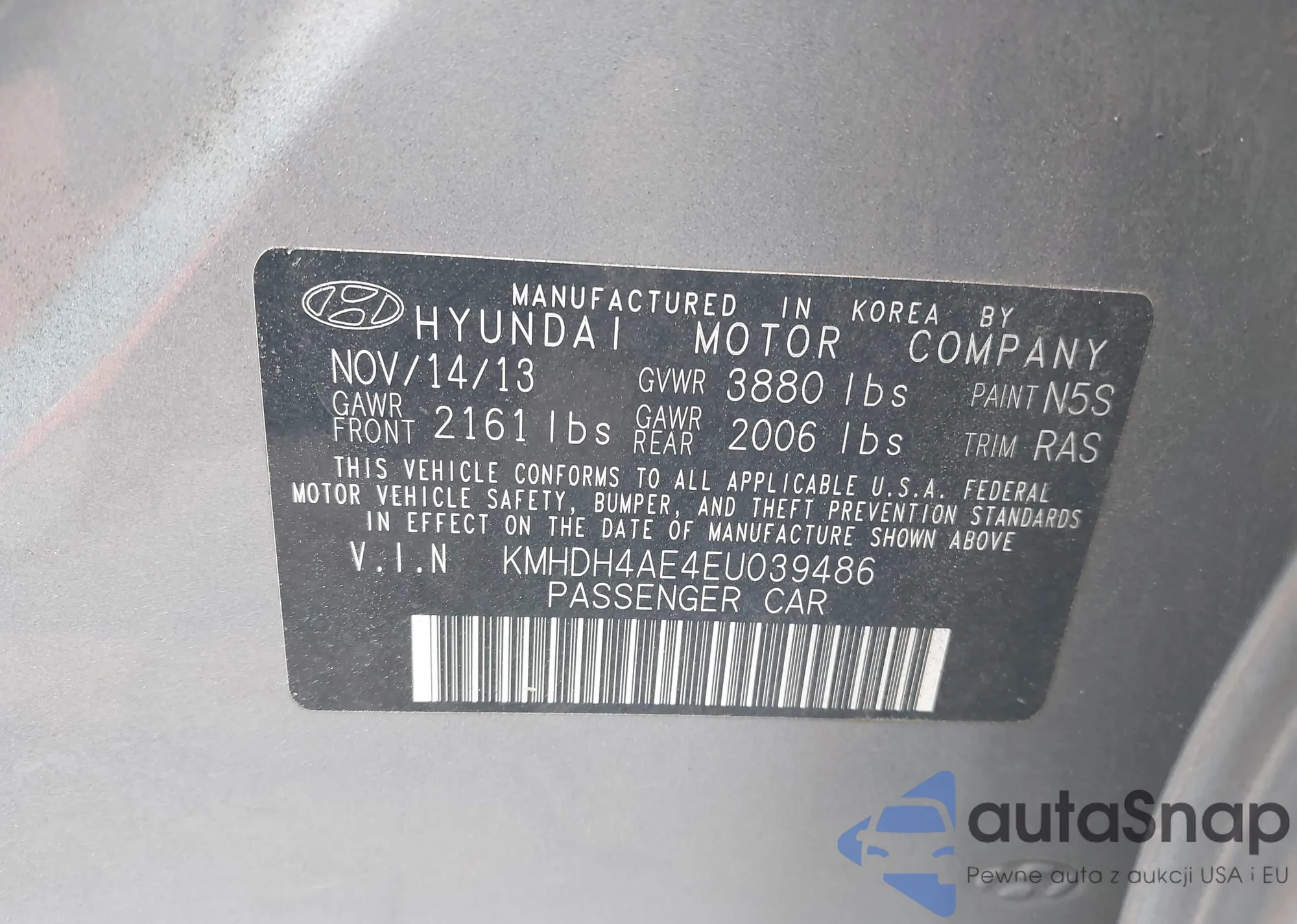 LOT: 42116882 VIN: KMHDH4AE4EU039486
