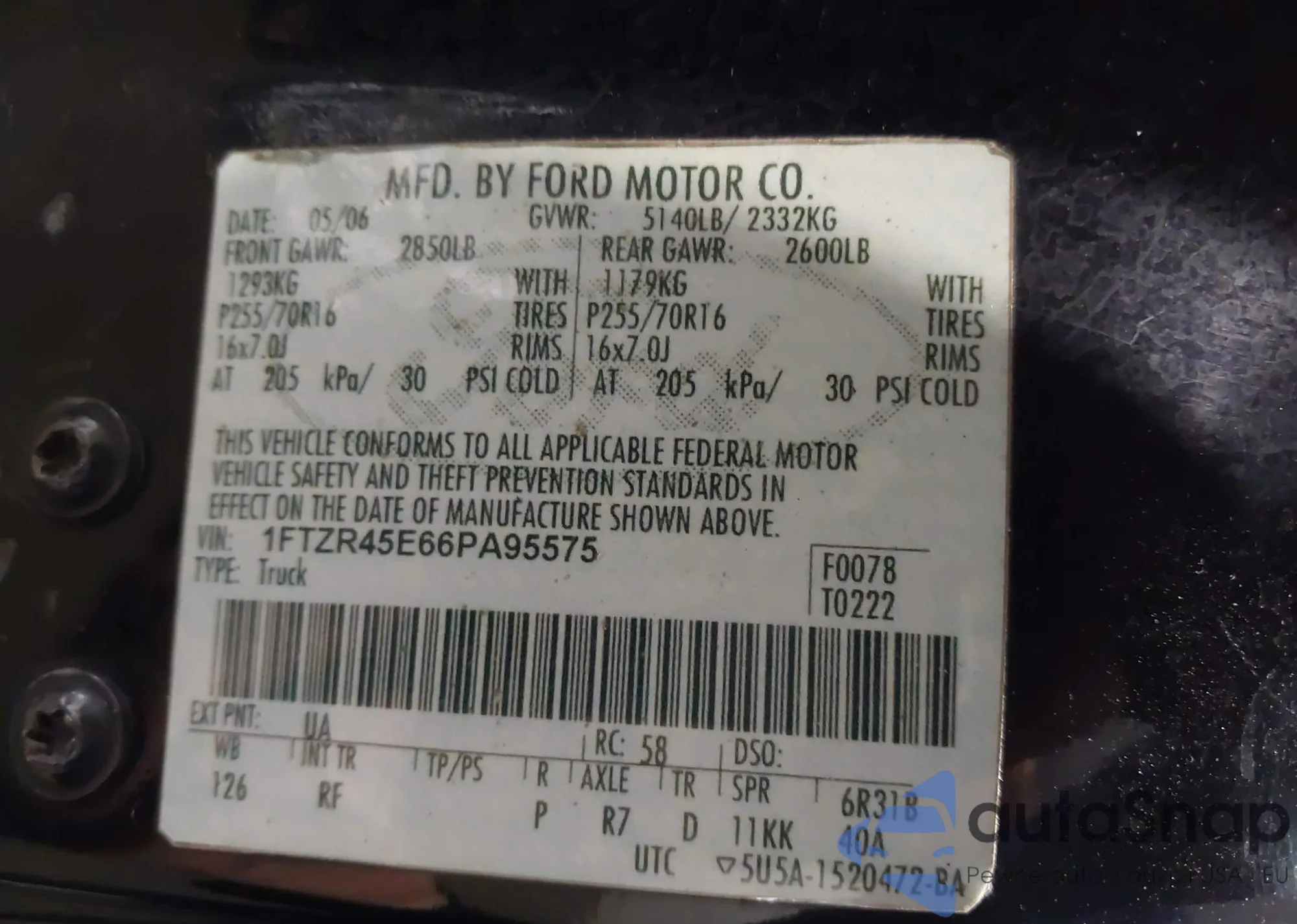 LOT: 42126084 VIN: 1FTZR45E66PA95575