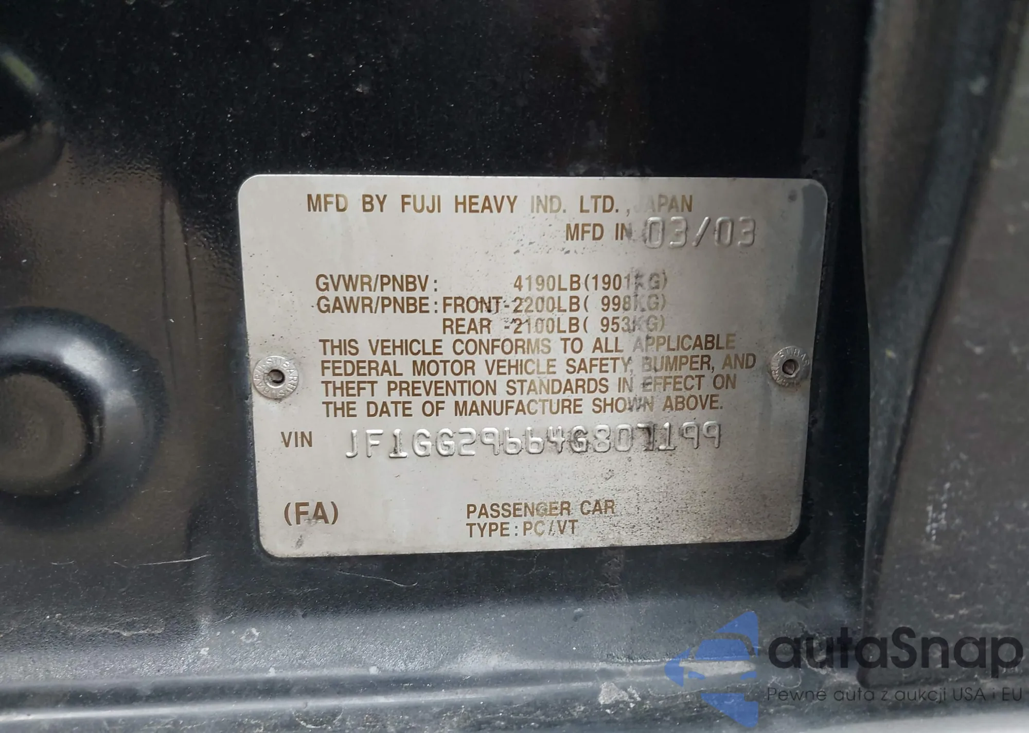 LOT: 42126897 VIN: JF1GG29664G807199