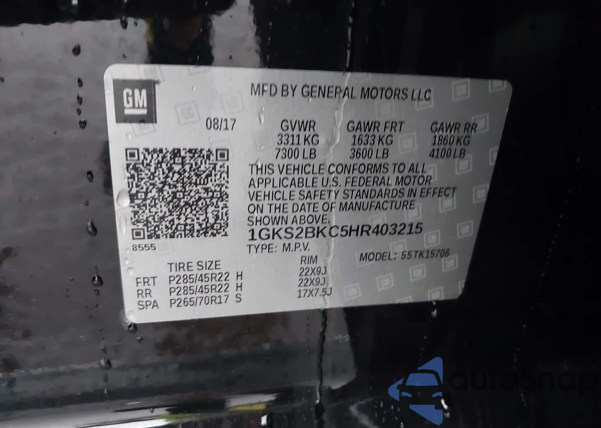 • VIN 1GKS2BKC5HR403215
