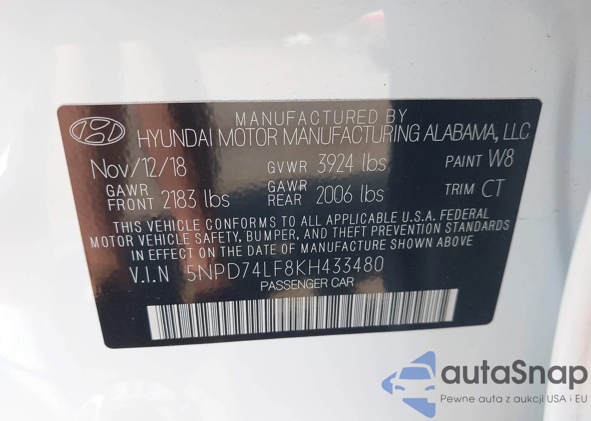 • VIN 5NPD74LF8KH433480