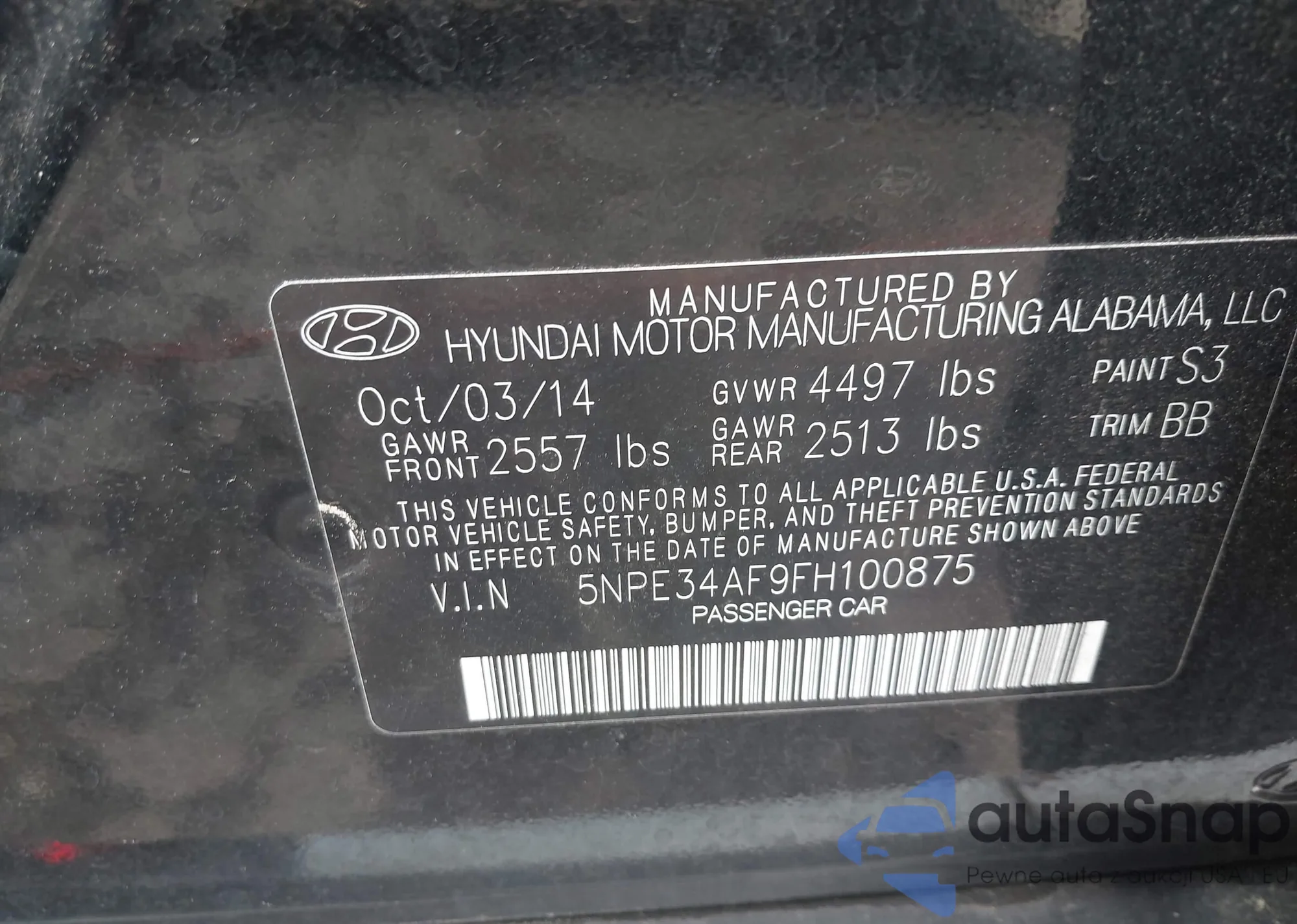 LOT: 42163678 VIN: 5NPE34AF9FH100875