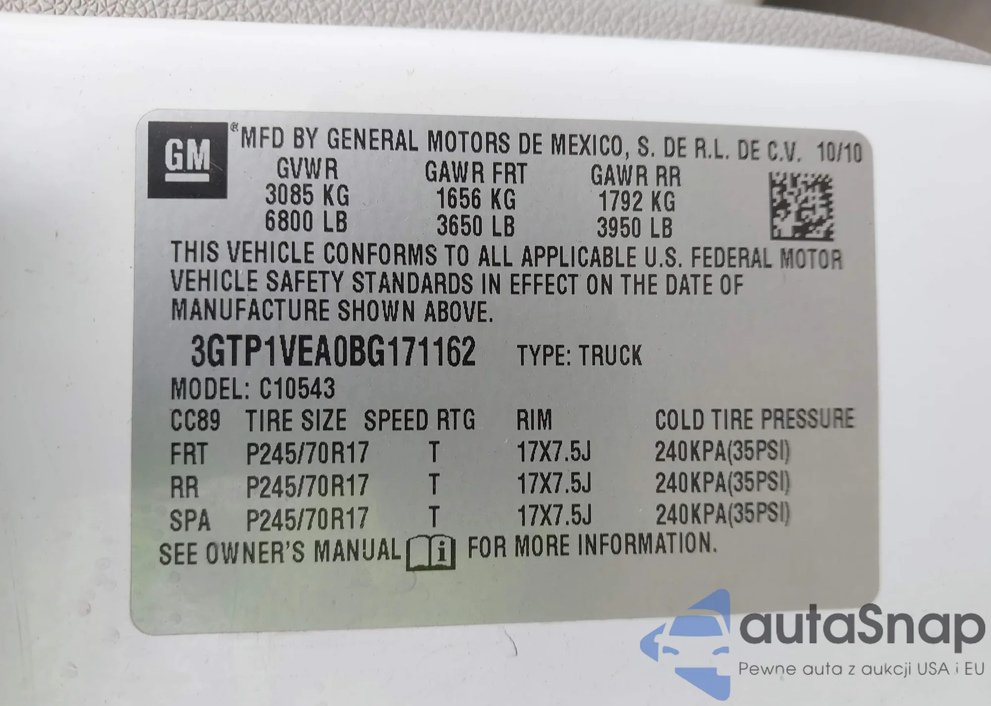 • VIN 3GTP1VEA0BG171162