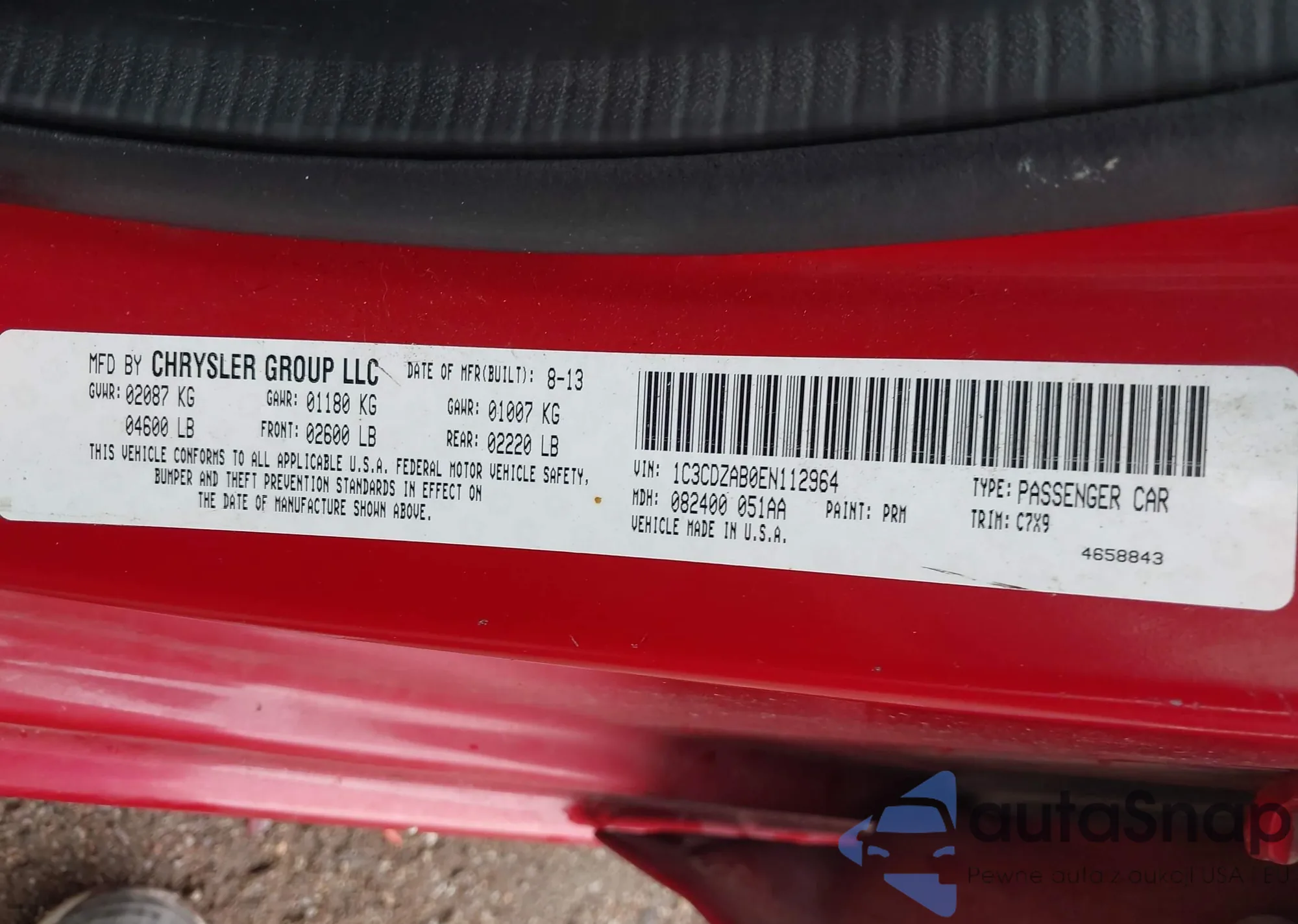 LOT: 42155909 VIN: 1C3CDZAB0EN112964