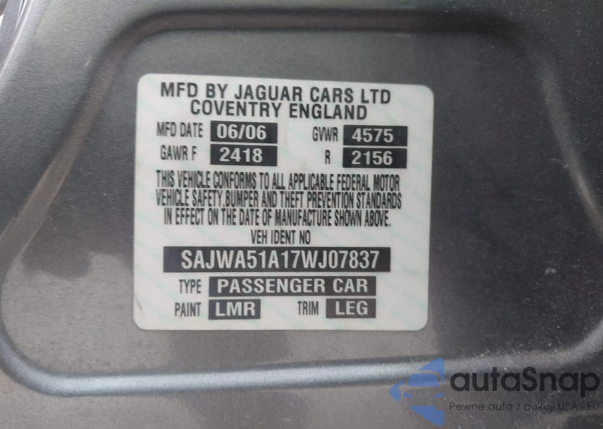 LOT: 42166665 VIN: SAJWA51A17WJ07837