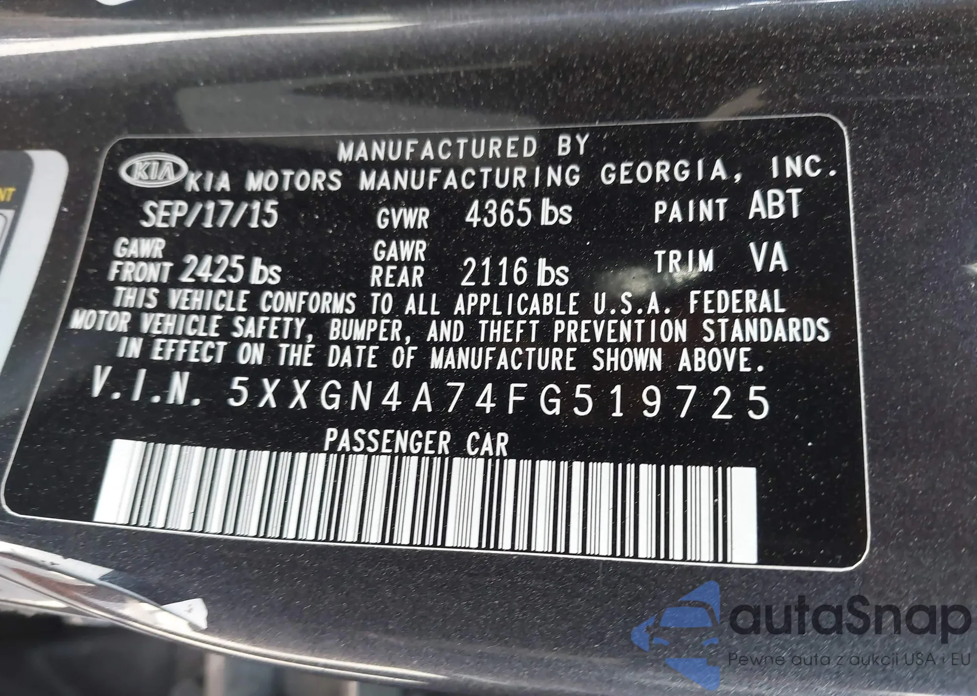 LOT: 42173092 VIN: 5XXGN4A74FG519725