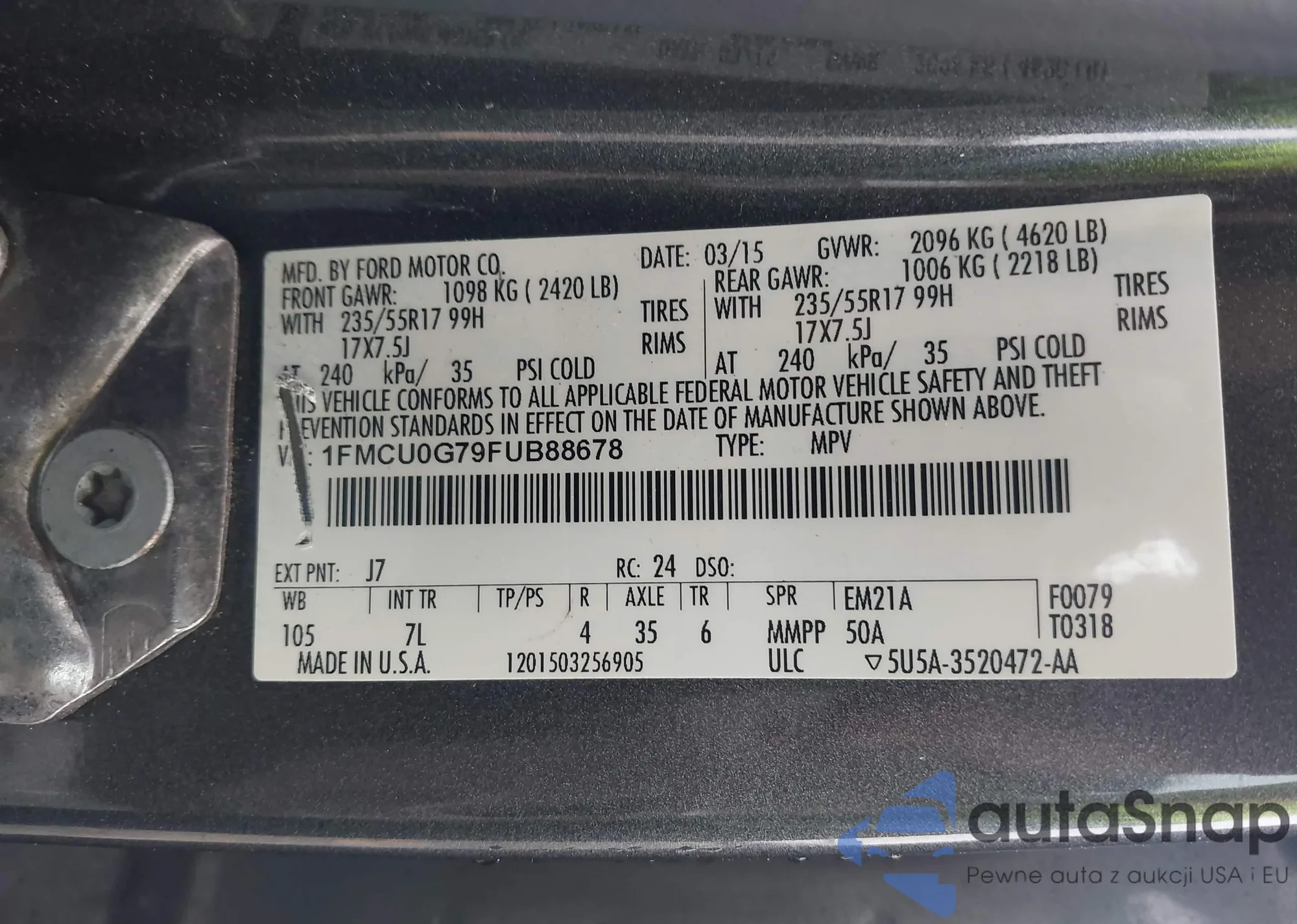 LOT: 42128858 VIN: 1FMCU0G93FUB70209