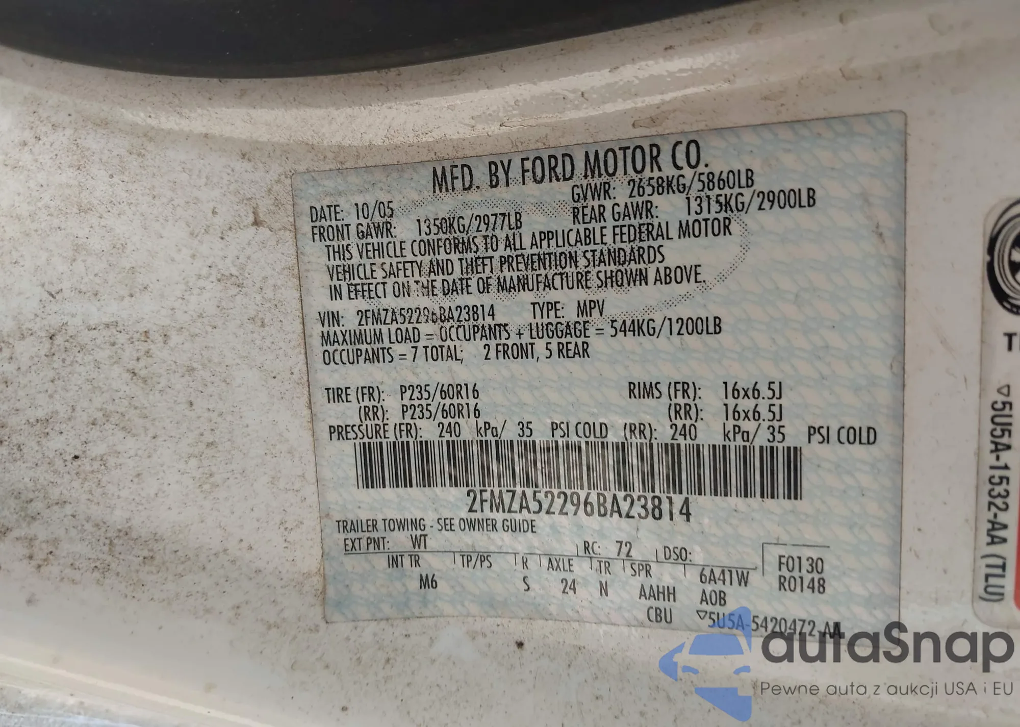 • VIN 2FMZA52296BA23814