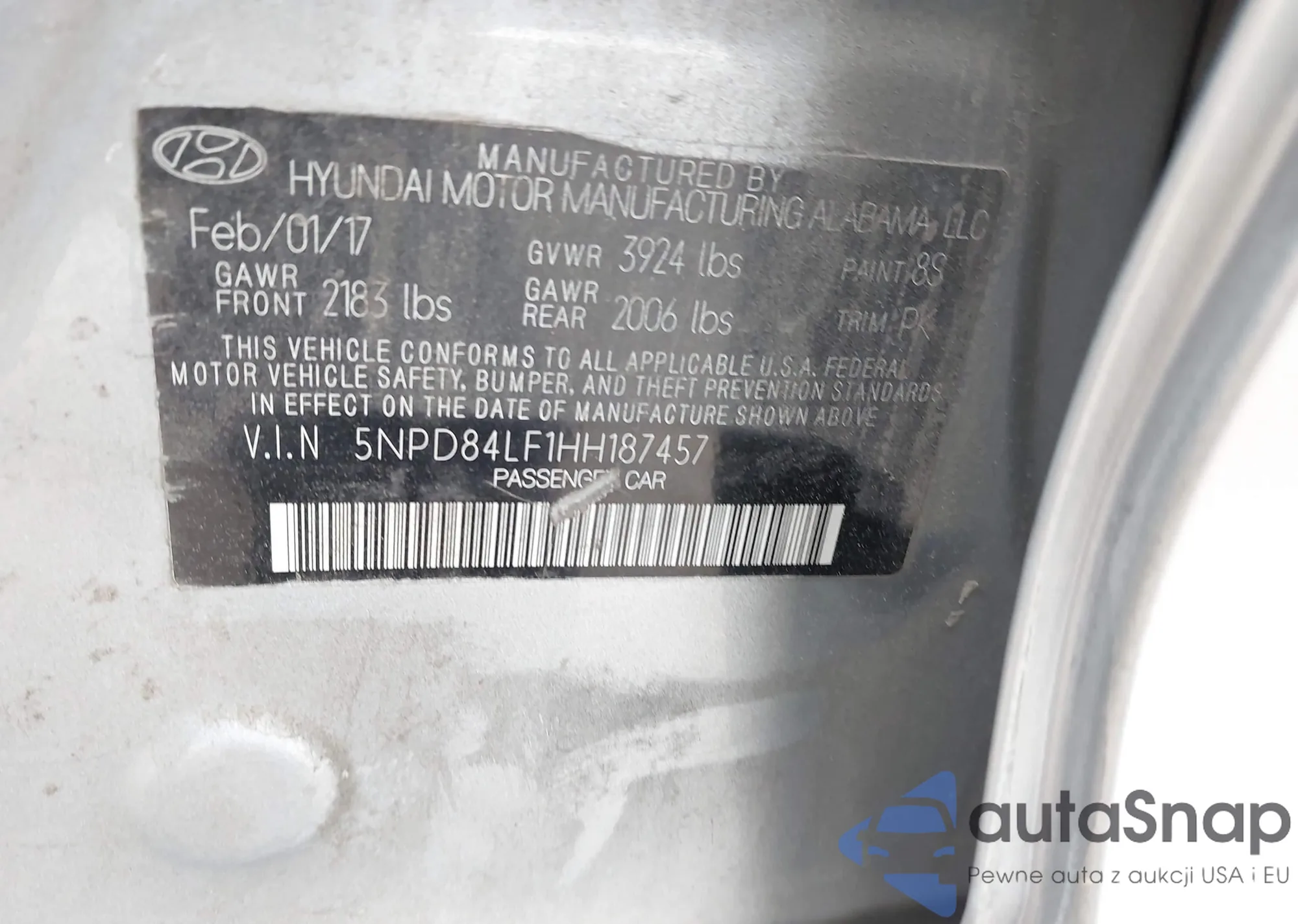 • VIN 5NPD84LF1HH187457
