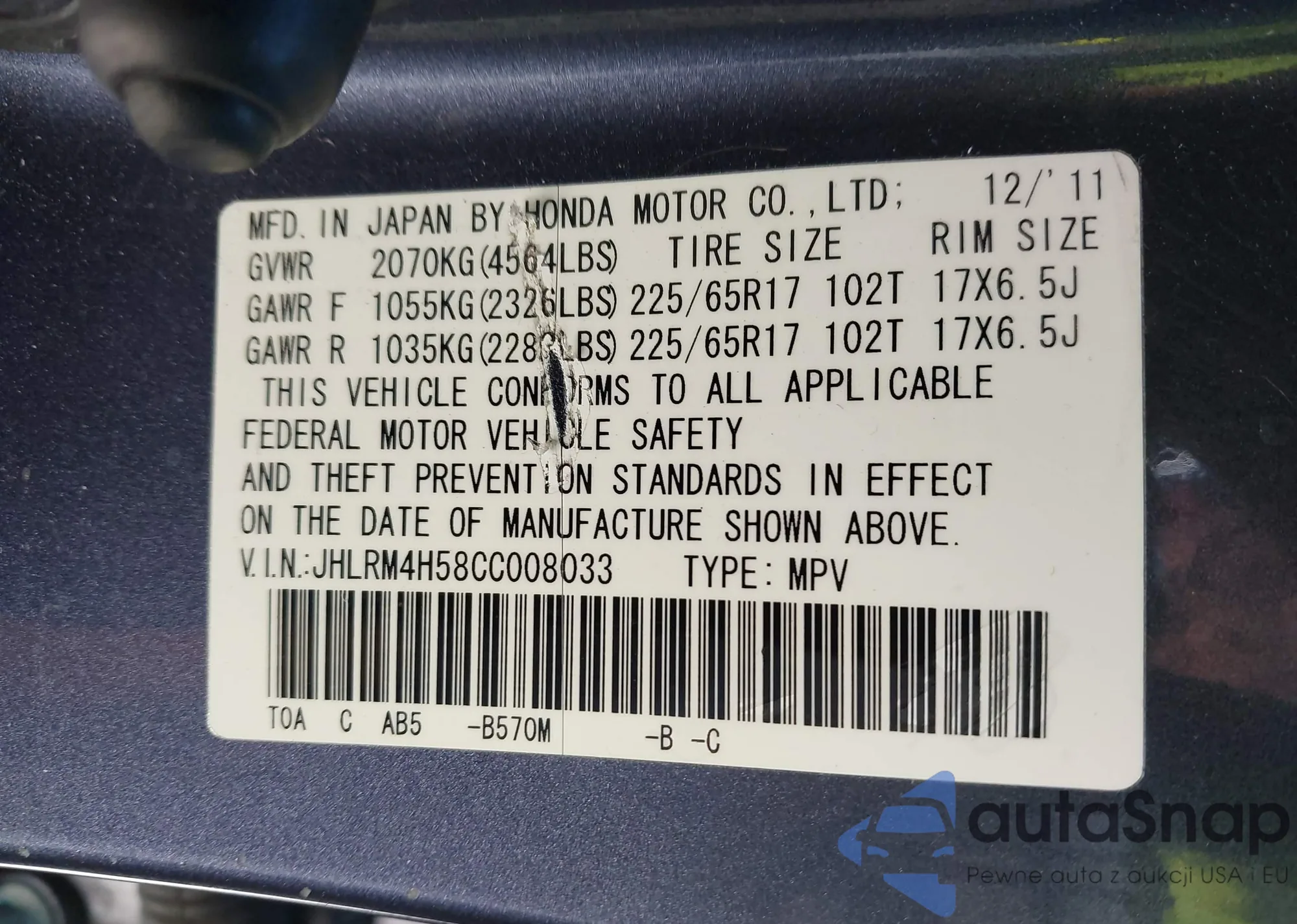 • VIN JHLRM4H58CC008033