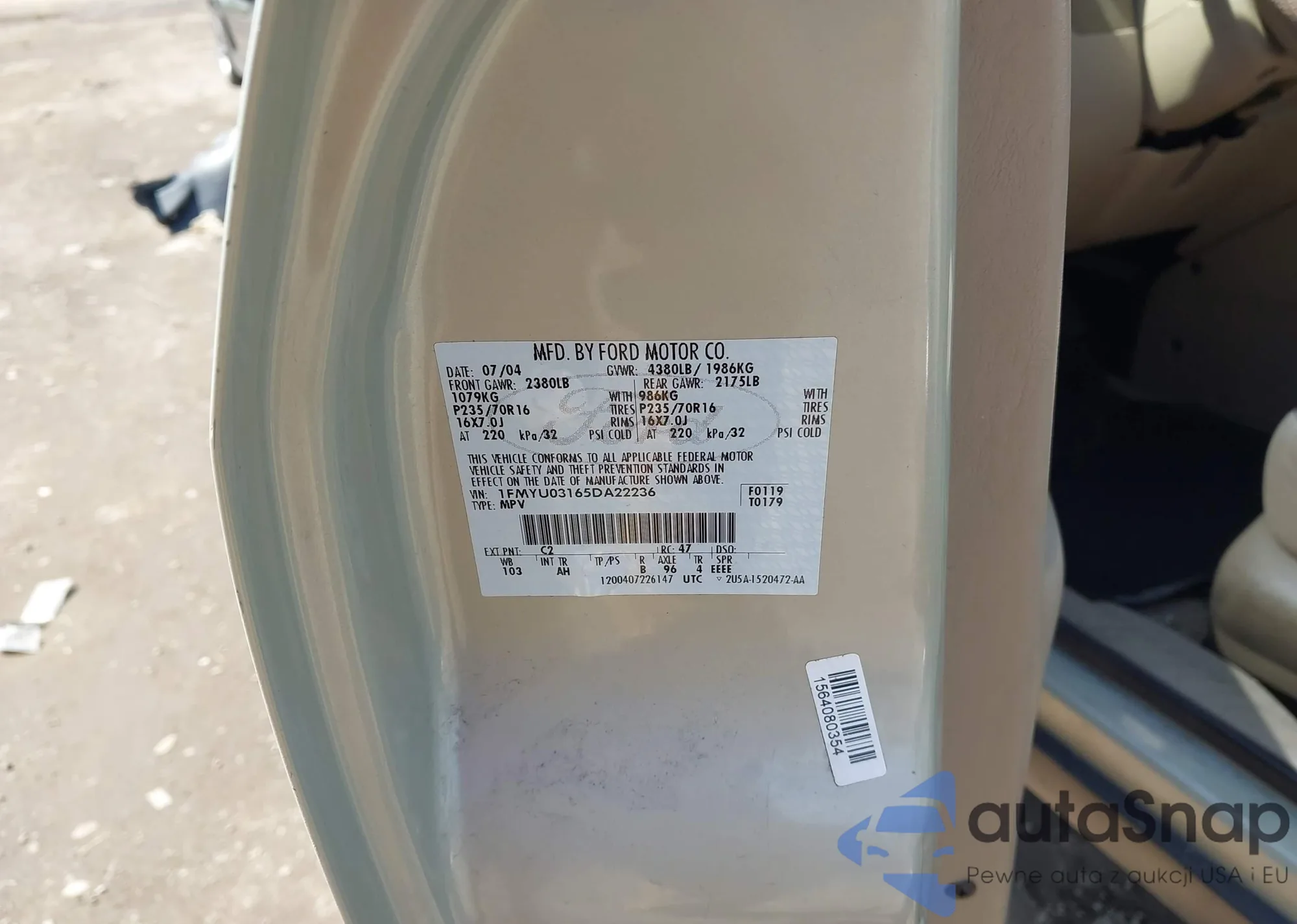 LOT: 42060235 VIN: 1FMYU03165DA22236