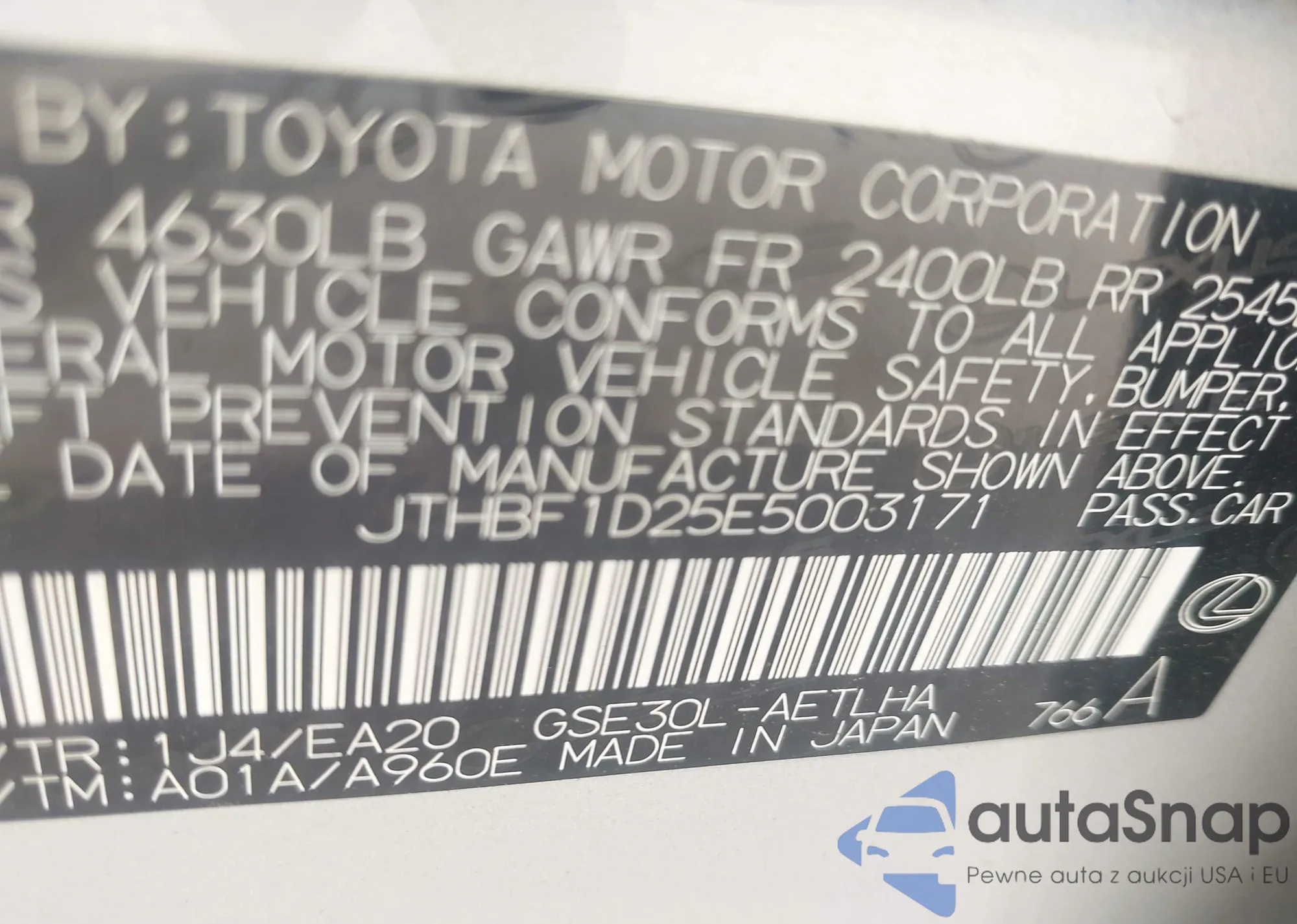 LOT: 39697709 VIN: JTMBD33V876030831