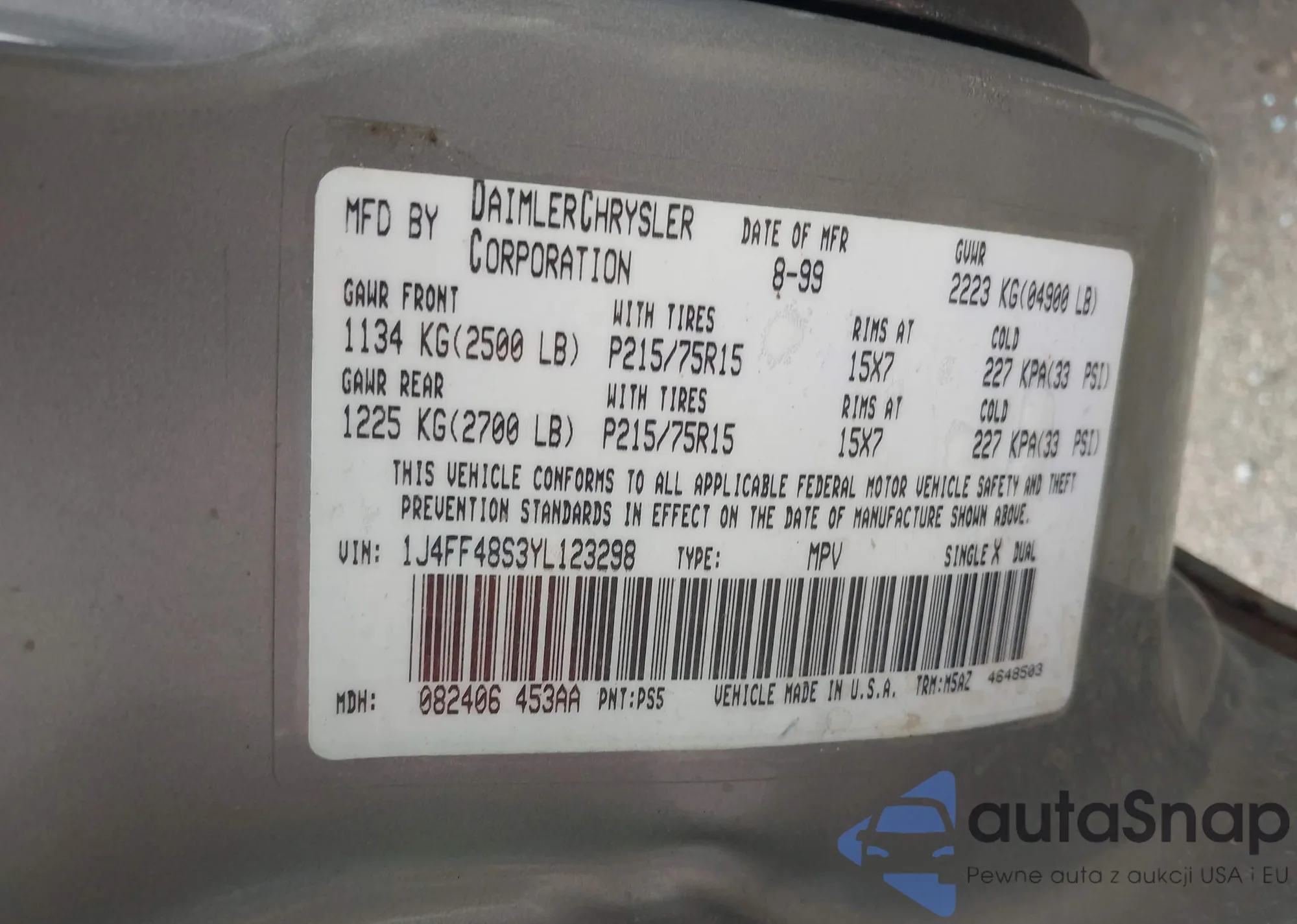 • VIN 1J4FF48S3YL123298