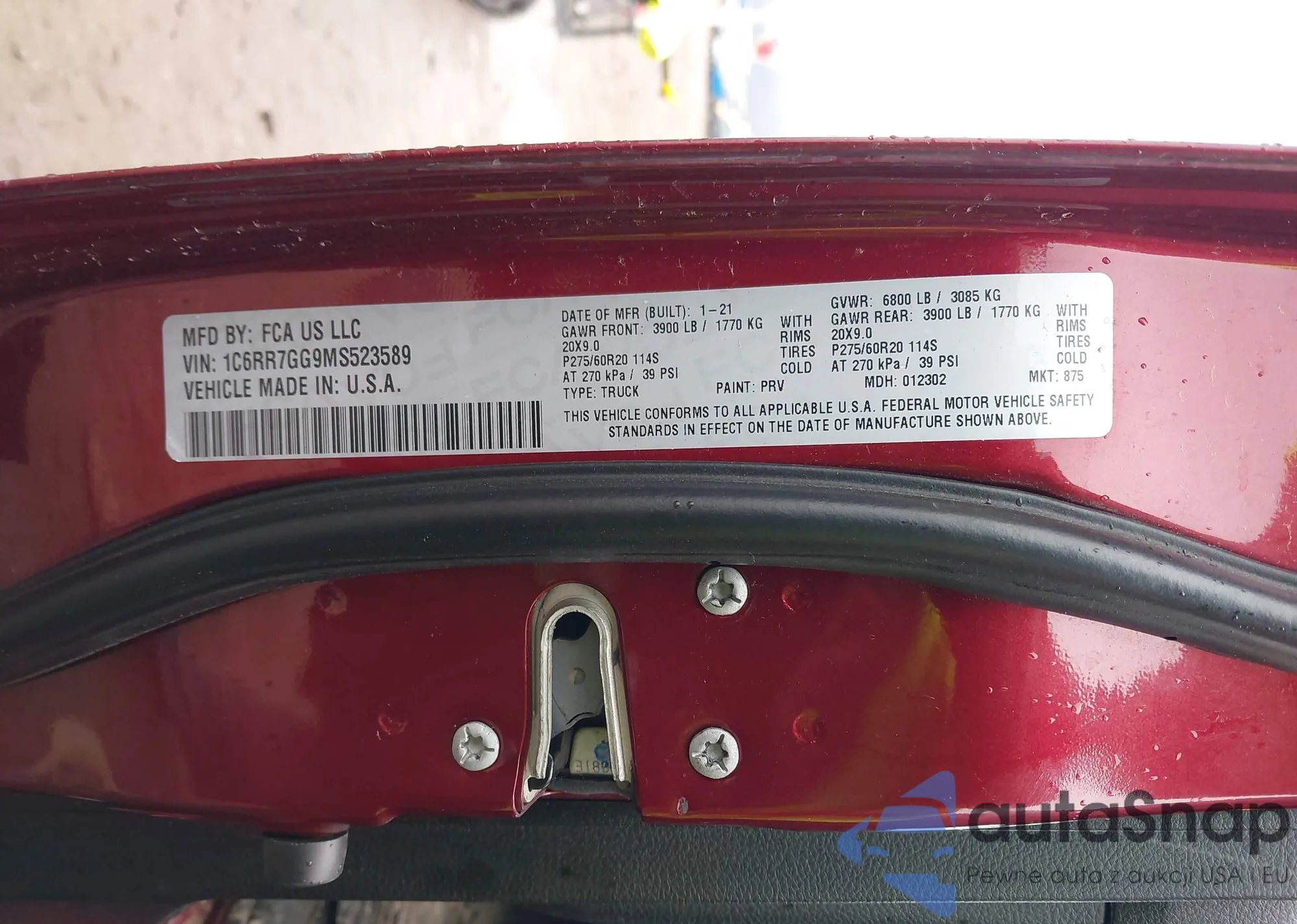• VIN 1C6RR7GG9MS523589