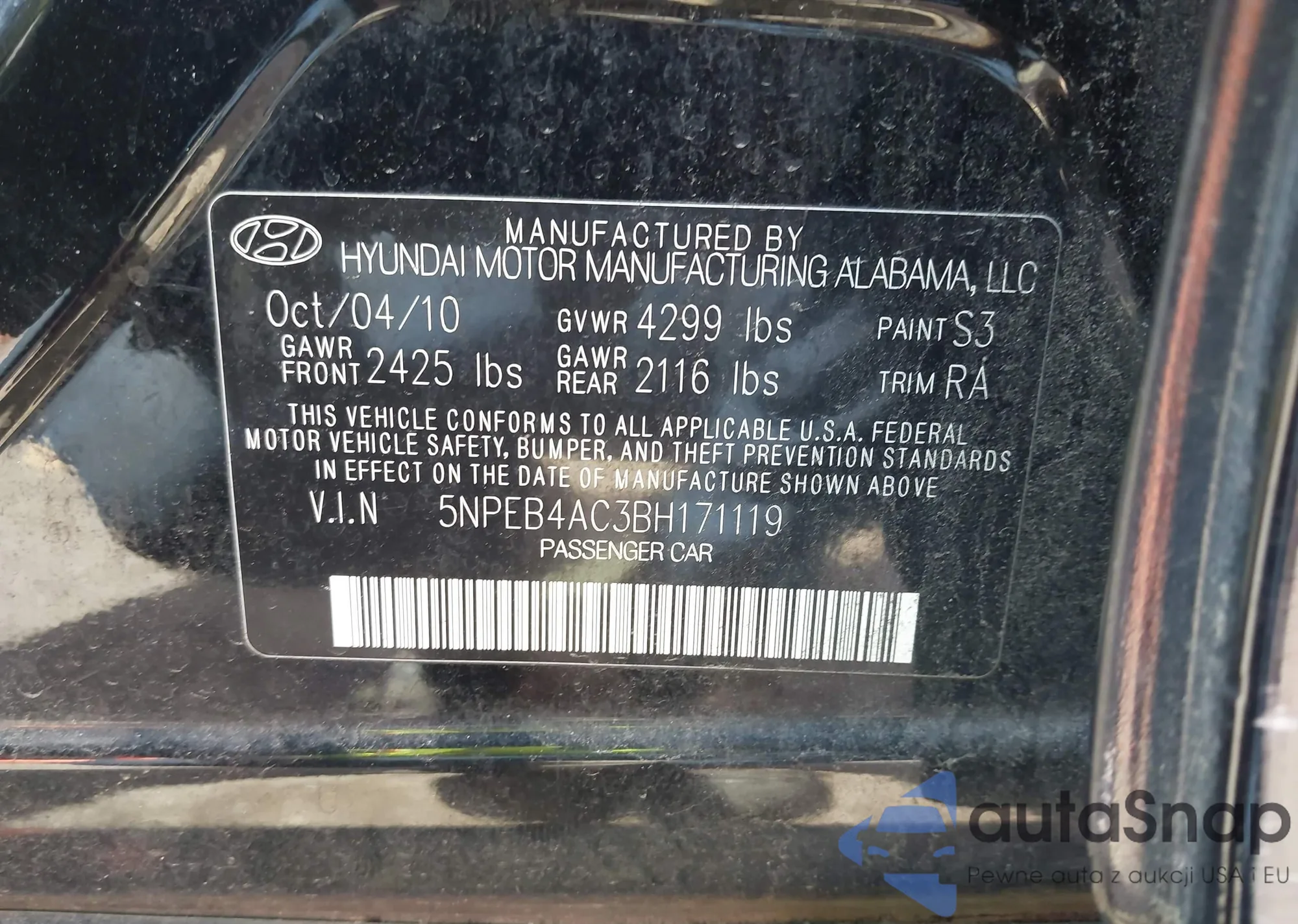 • VIN 5NPEB4AC3BH171119