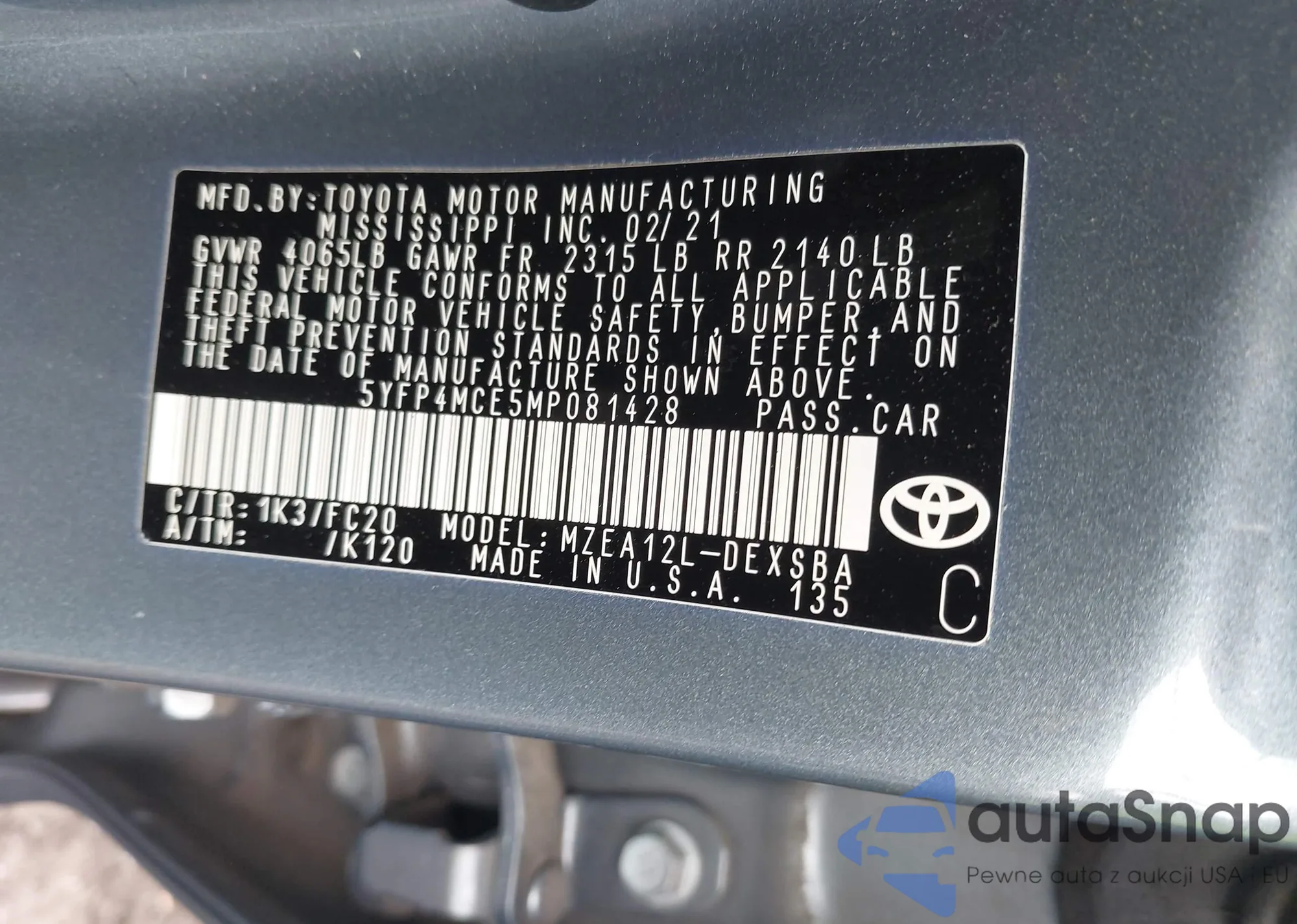 LOT: 42059631 VIN: 1G1FY6S05M4112478