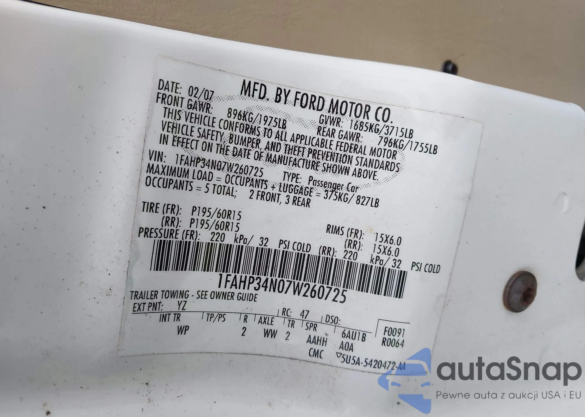 LOT: 42148527 VIN: 1FAFP66LXYK134000