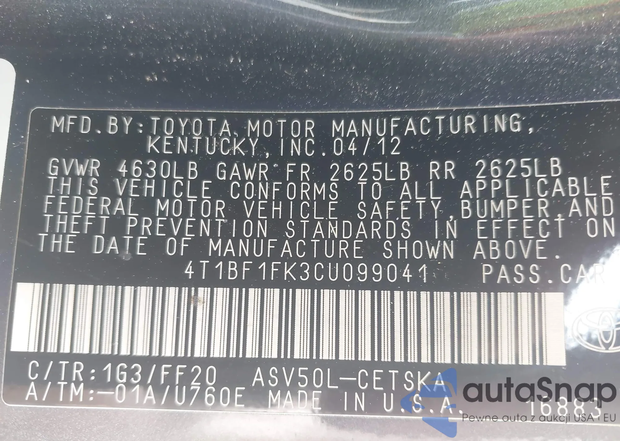 LOT: 42138775 VIN: 5TFJU4GN3DX040040
