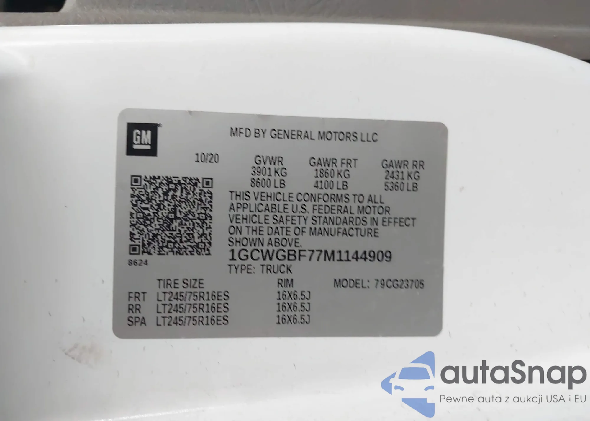 • VIN 1GCWGBF77M1144909