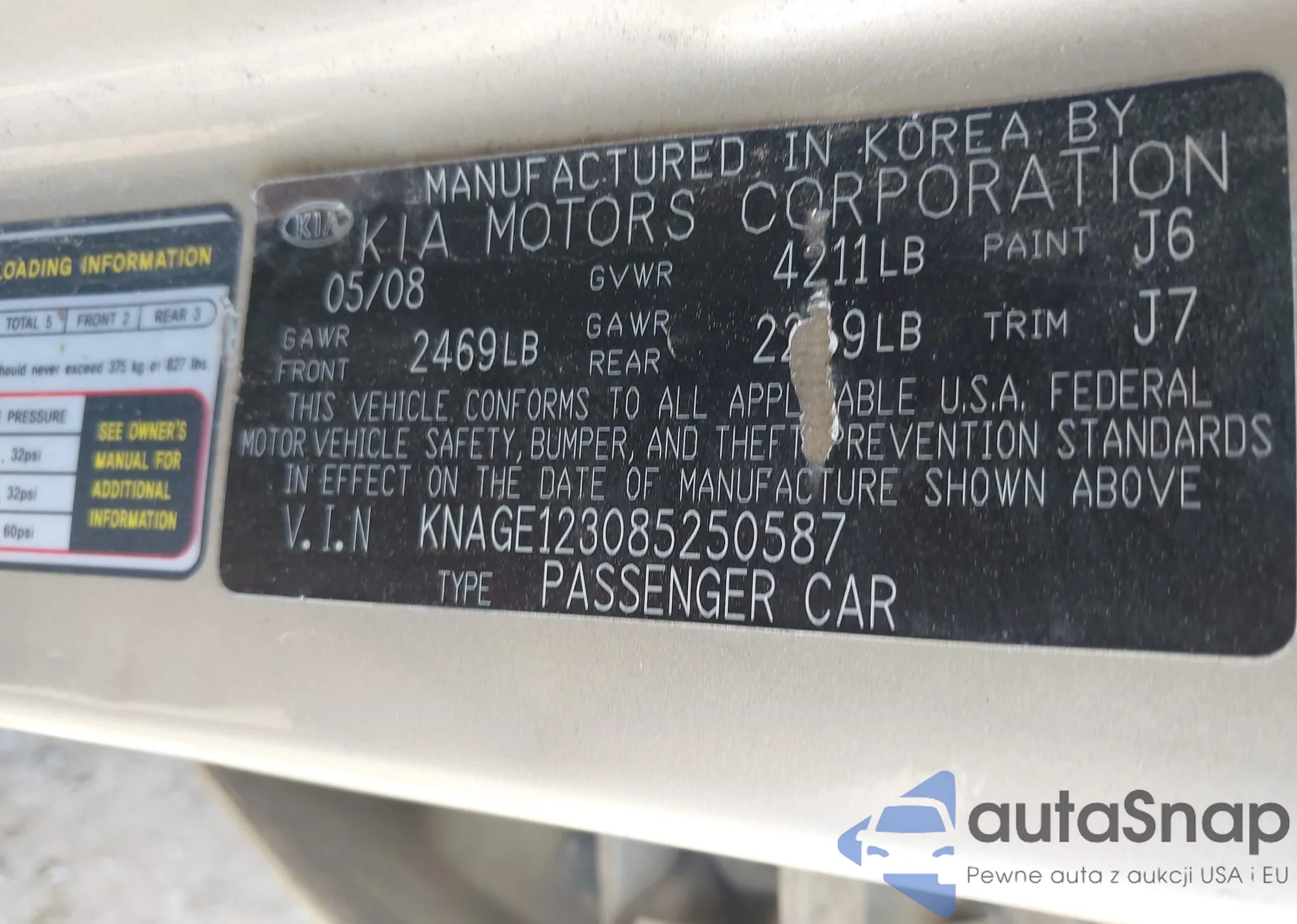LOT: 42171570 VIN: KNAGE123085250587