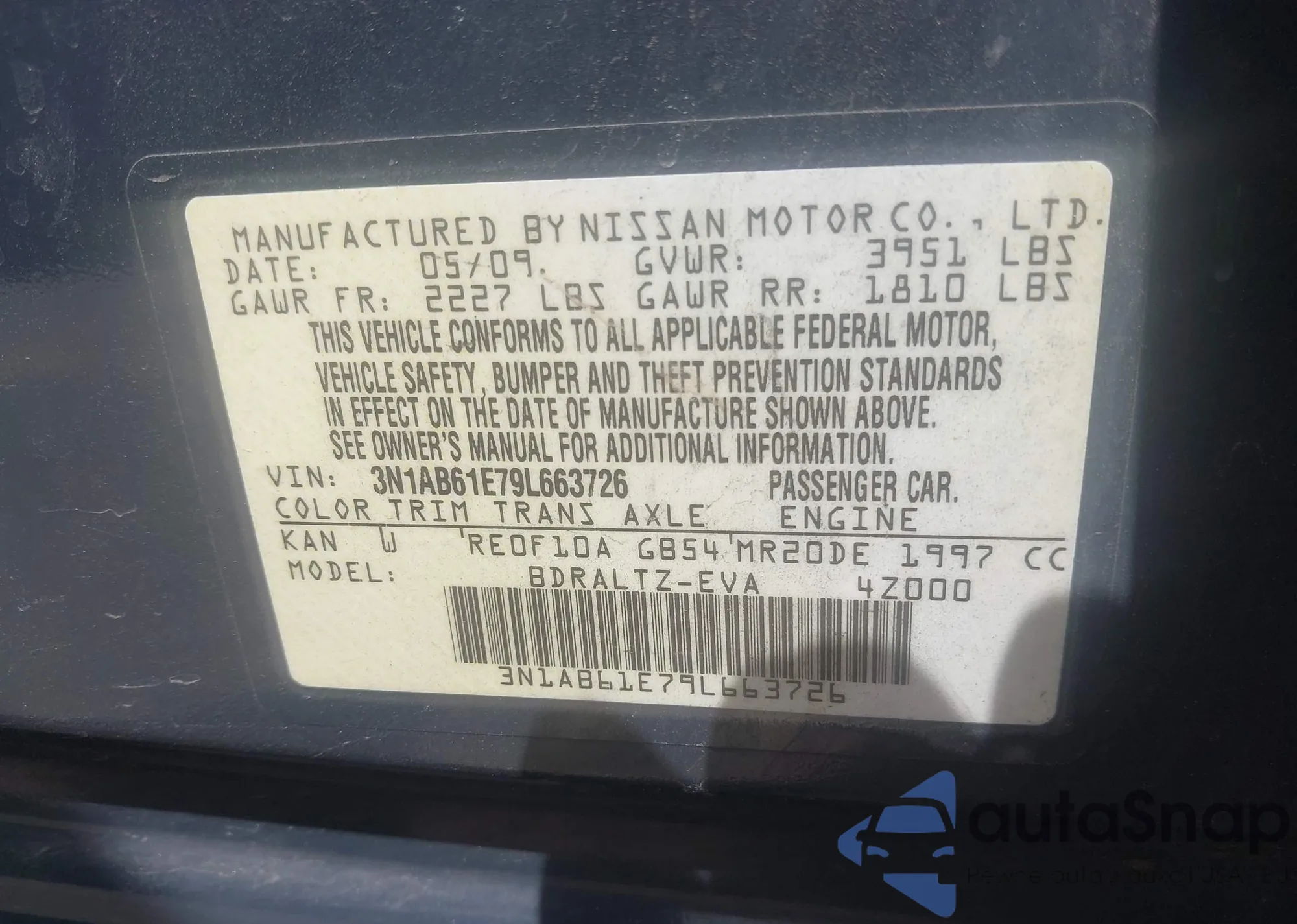 • VIN 1N4AL3AP9EC152041