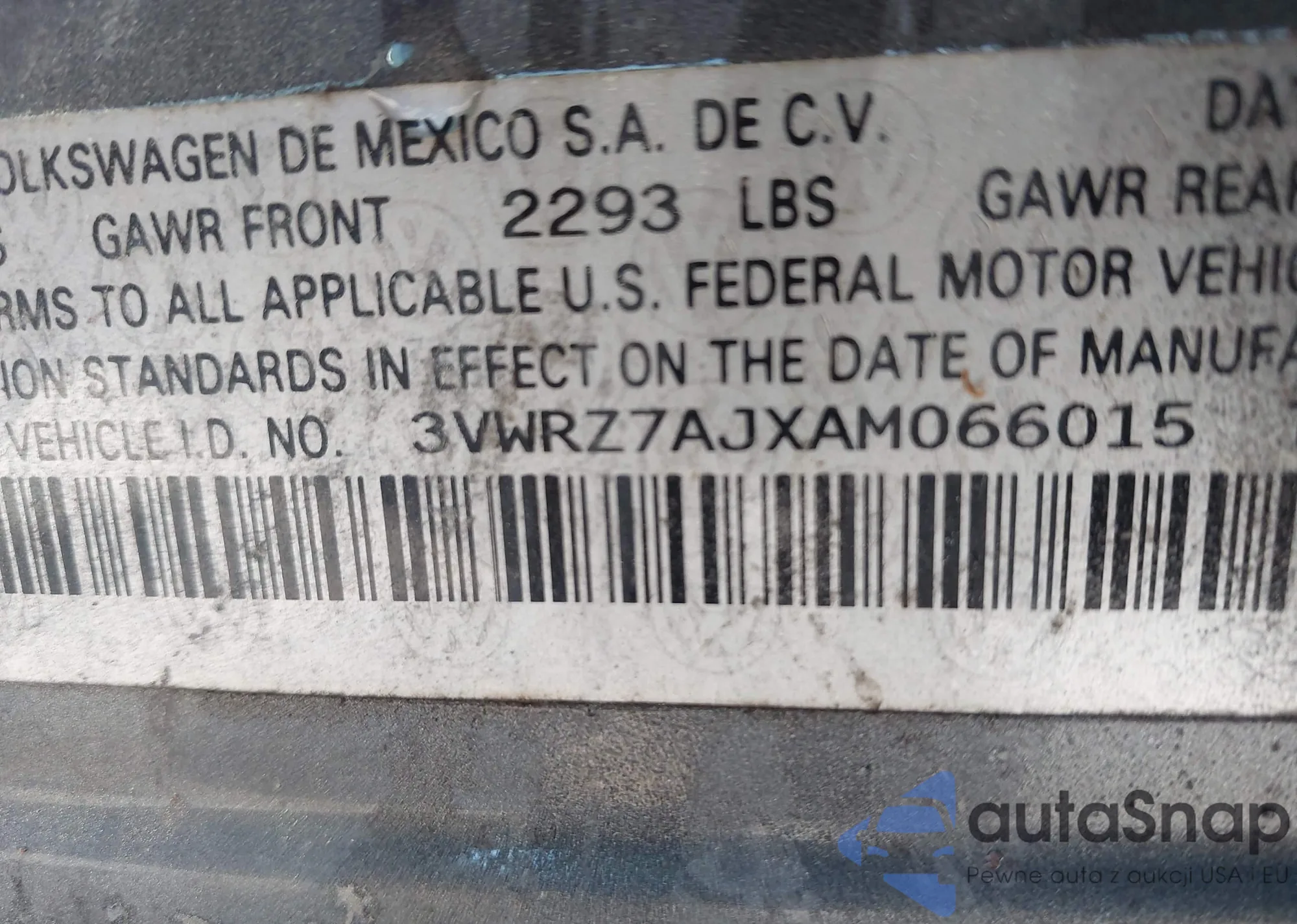 • VIN 3VWRZ7AJXAM066015