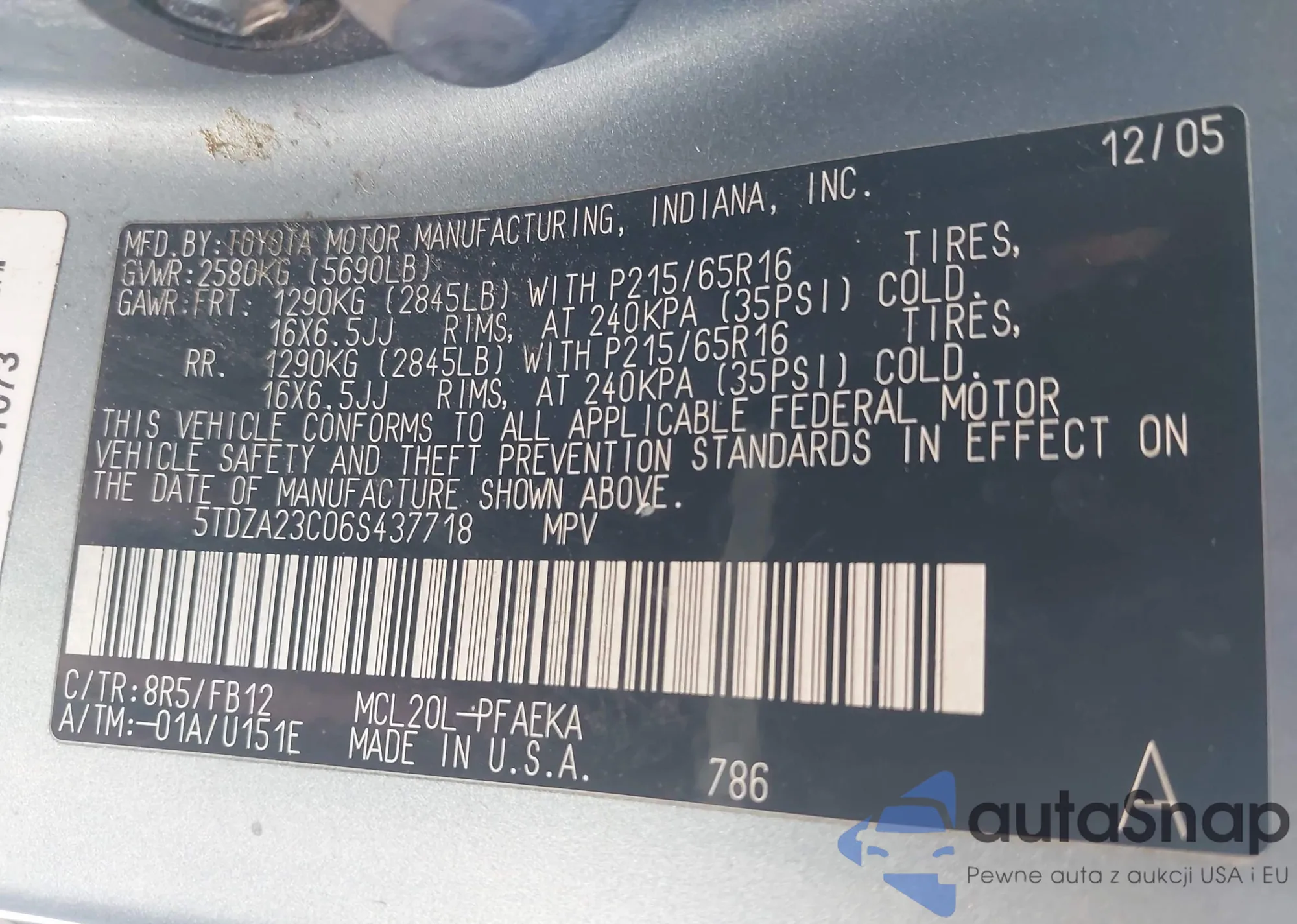 • VIN 5TDZA23C06S437718
