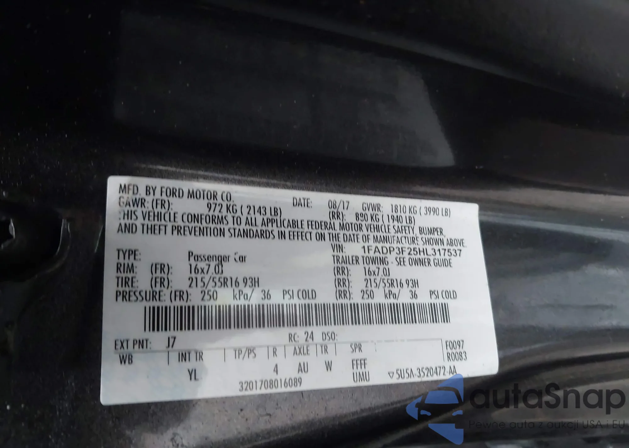 • VIN 1FATP8UH9J5167426