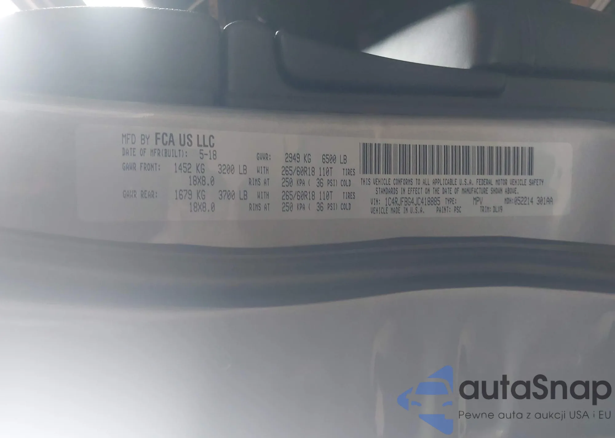 • VIN 1C4RJFBG4JC418885