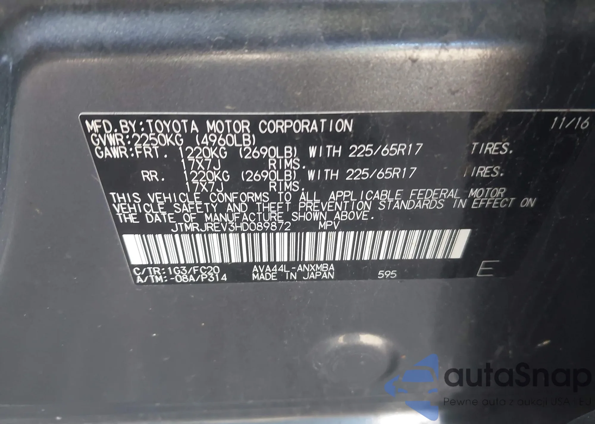 LOT: 42291488 VIN: JTEZU14R938008853
