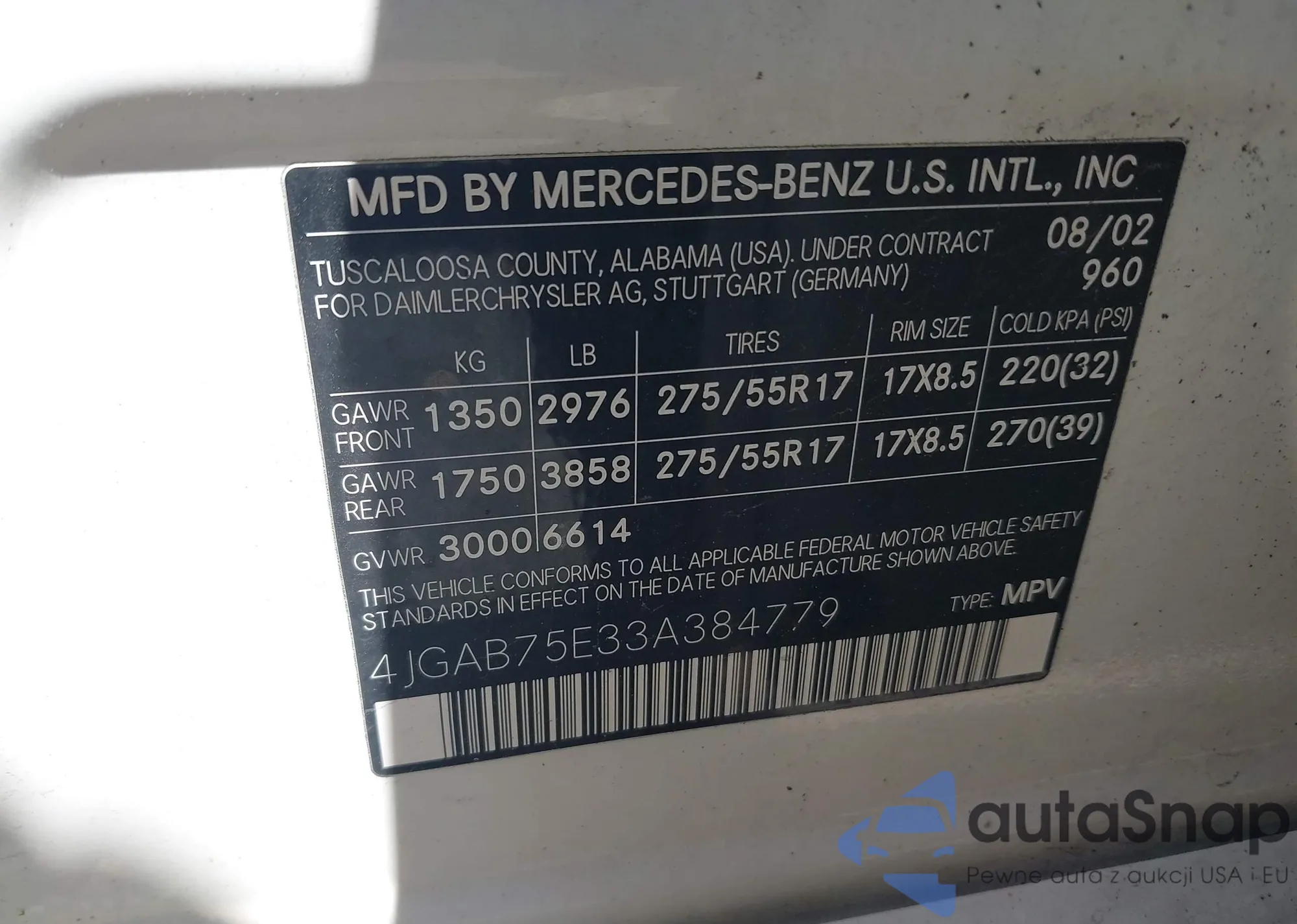 • VIN 4JGAB75E33A384779