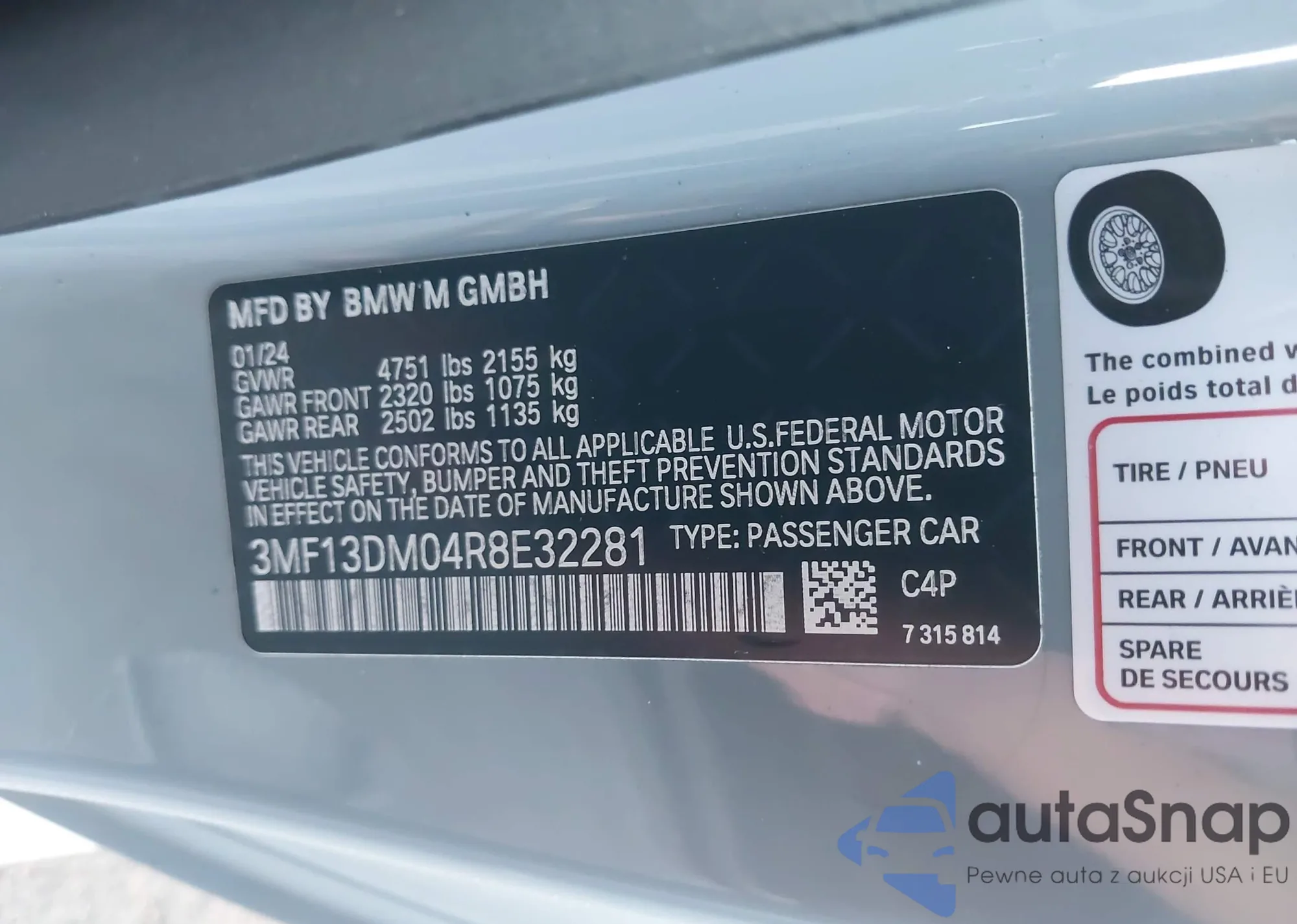 2024 BMW M2 из США, поврежденный, VIN 3MF13DM04R8E32281