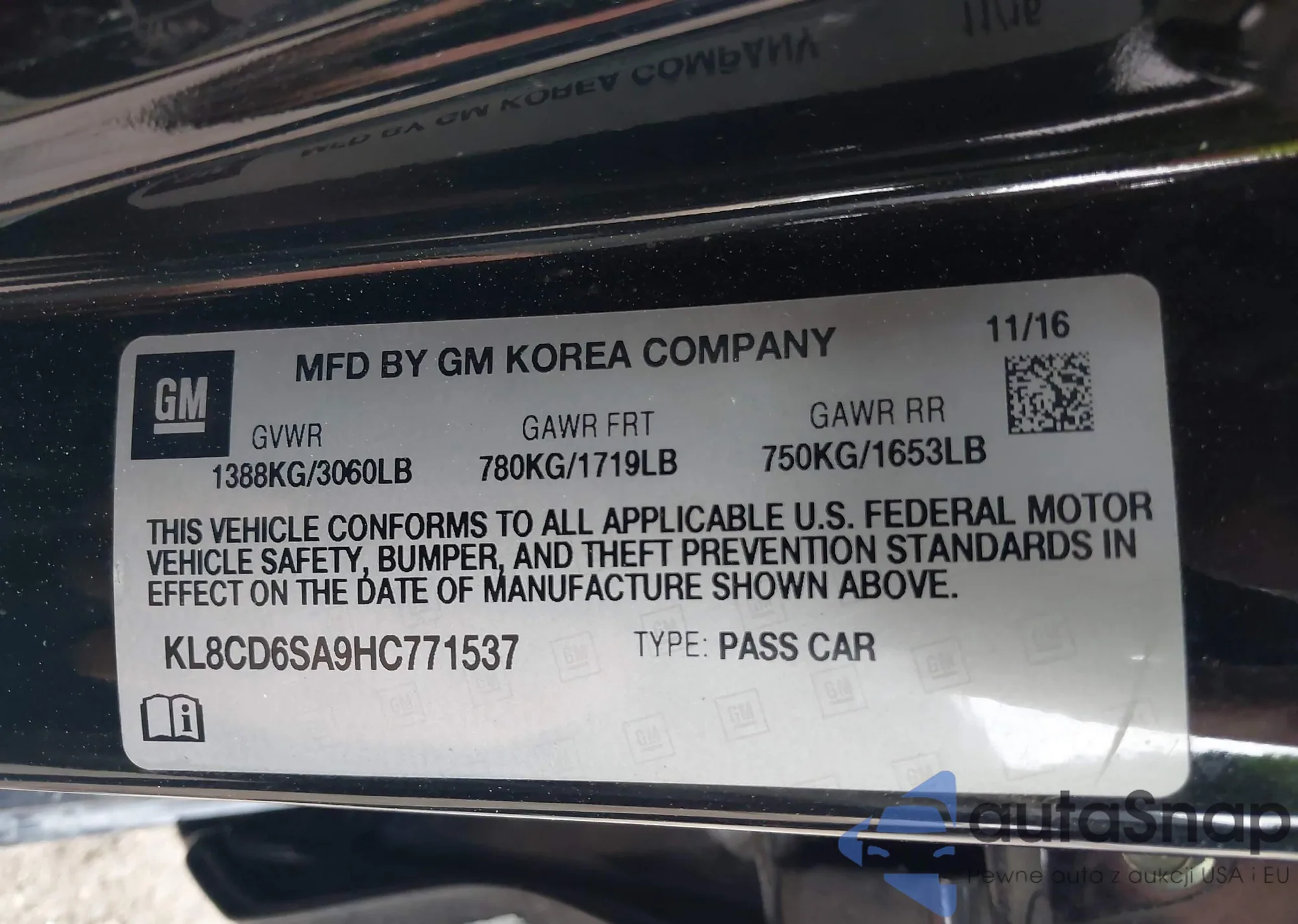 • VIN KL8CD6SA9HC771537