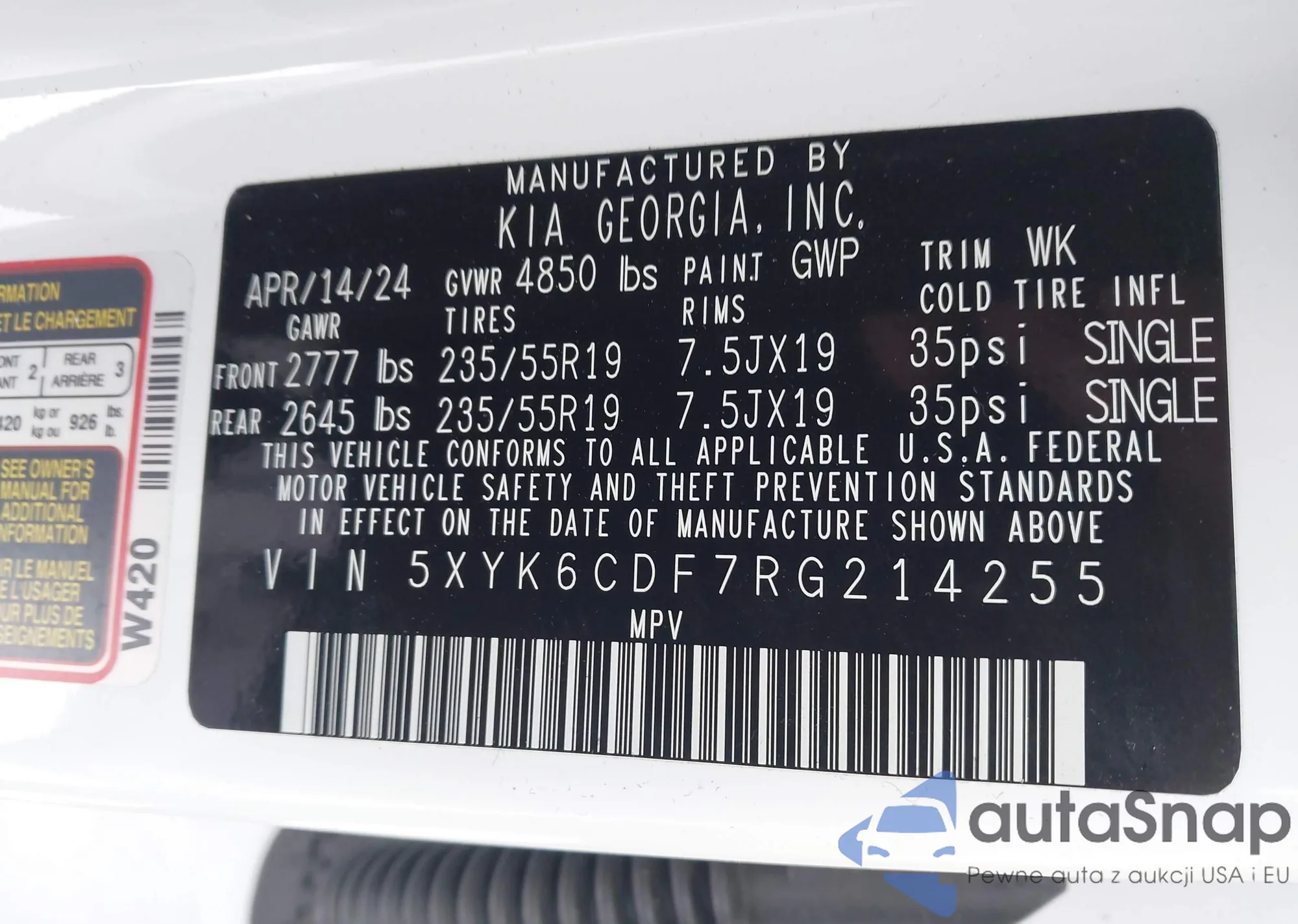 • VIN 5XYK6CDF7RG214255