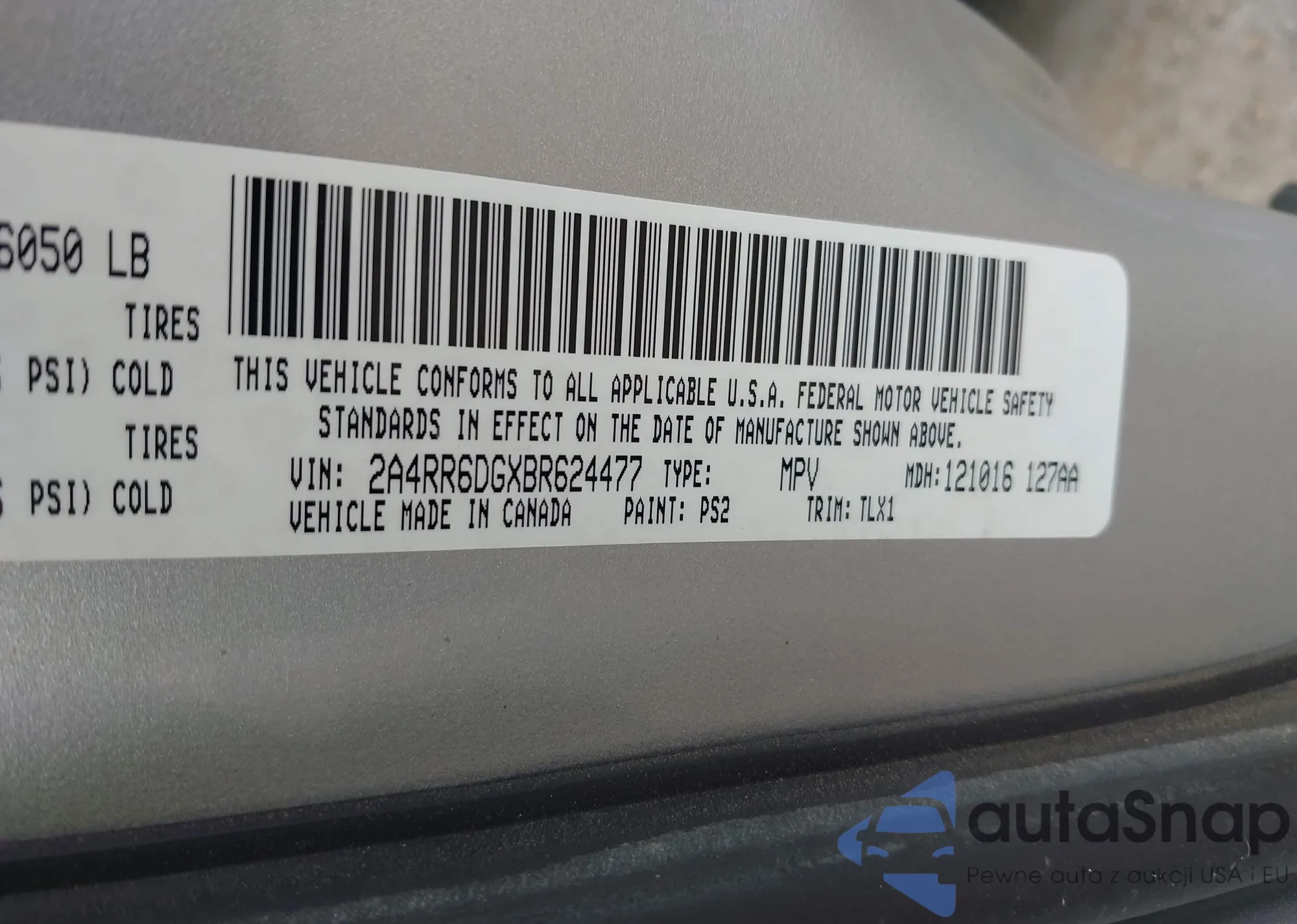 • VIN 2A4RR6DGXBR624477
