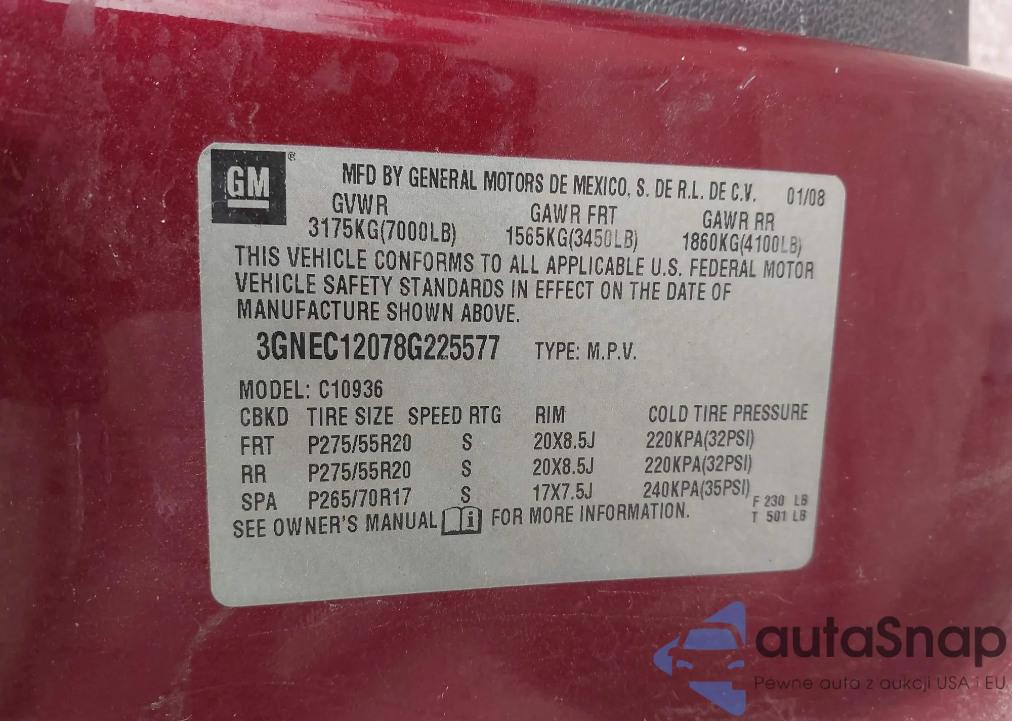 LOT: 42286661 VIN: 3GNEC12078G225577