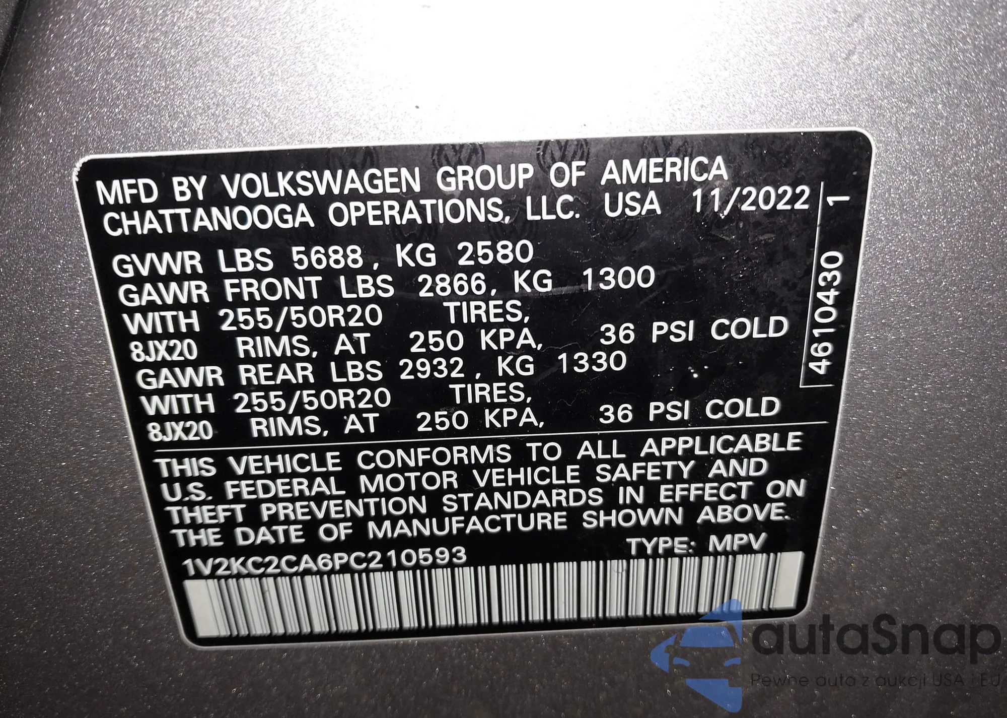 • VIN 1V2KC2CA6PC210593