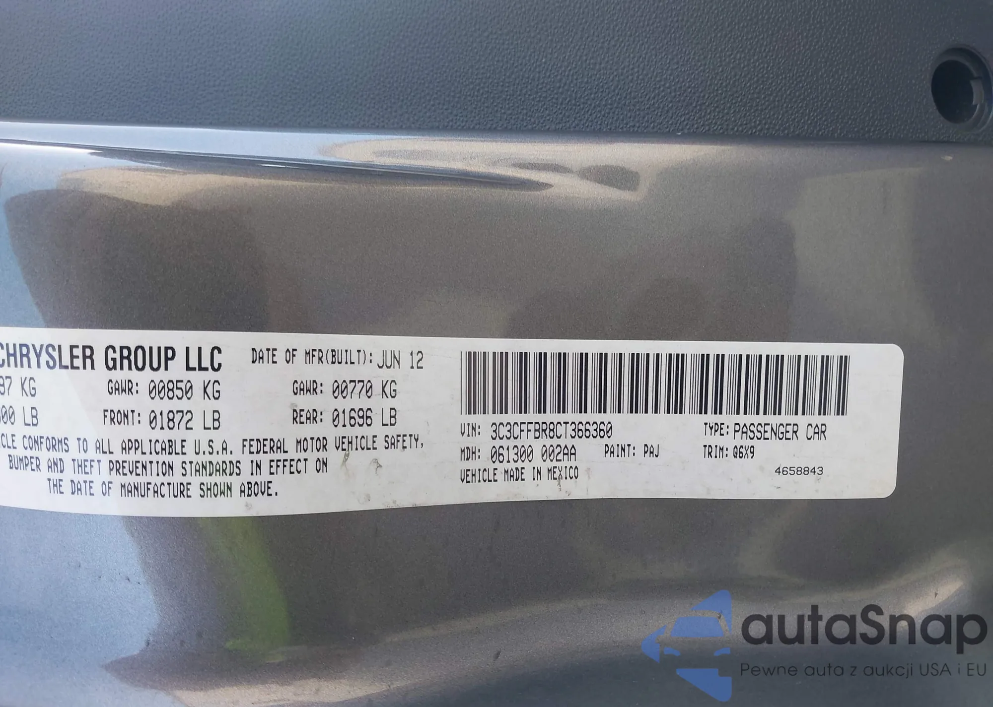 LOT: 41964253 VIN: 3C3CFFBR8CT366360