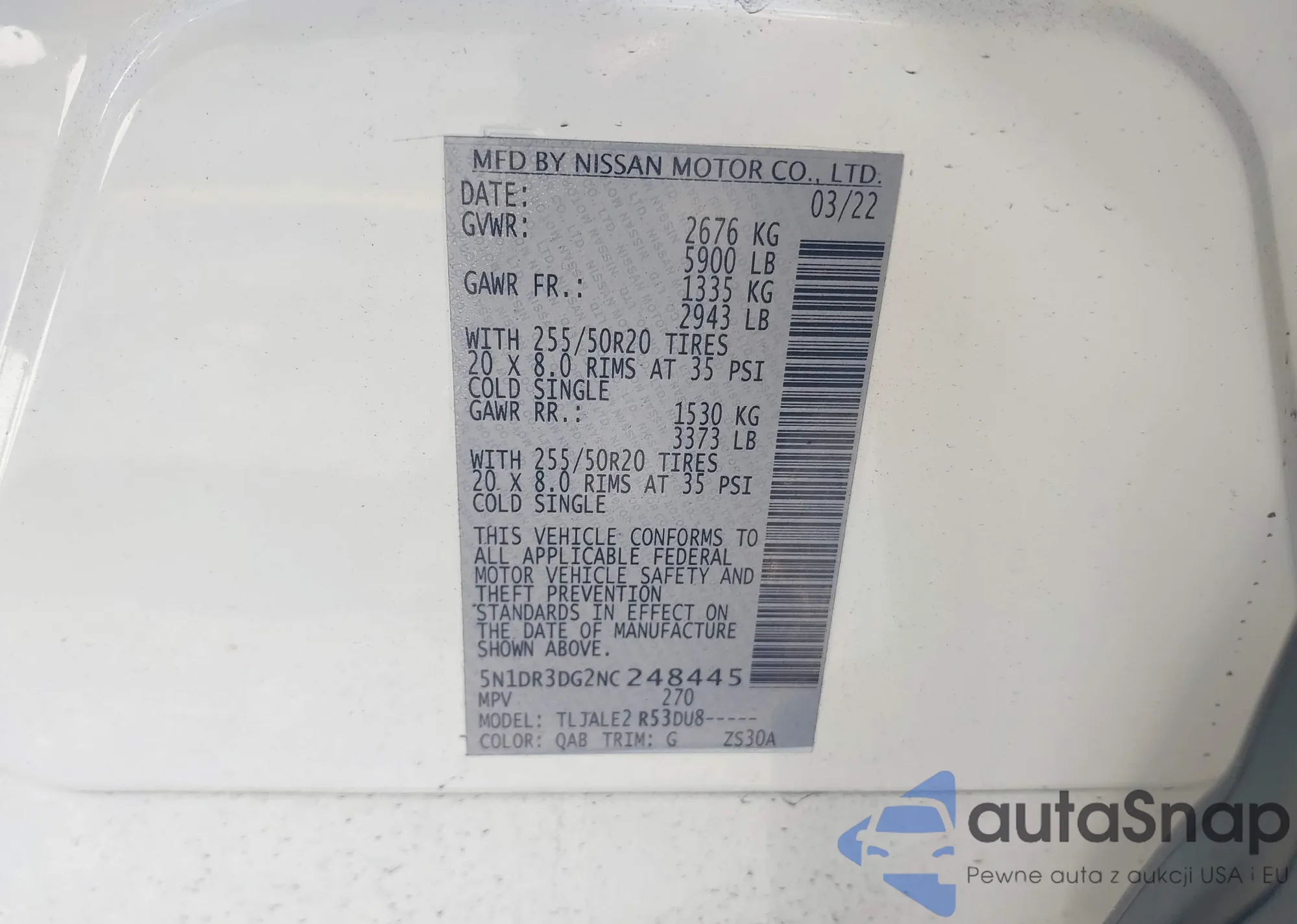 LOT: 42006840 VIN: ZASFAKPN0J7B92833