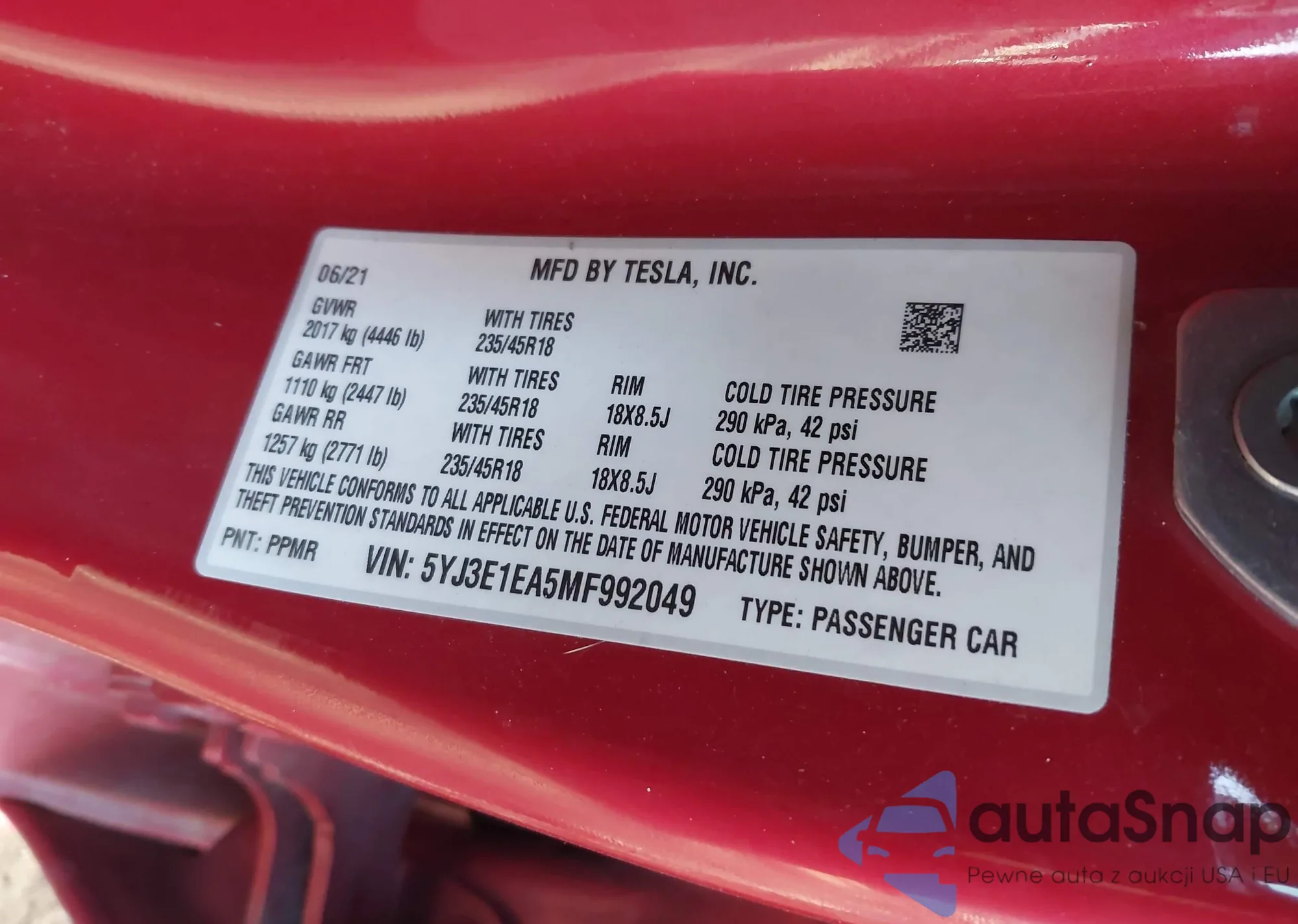 • VIN 5YJ3E1EA5MF992049