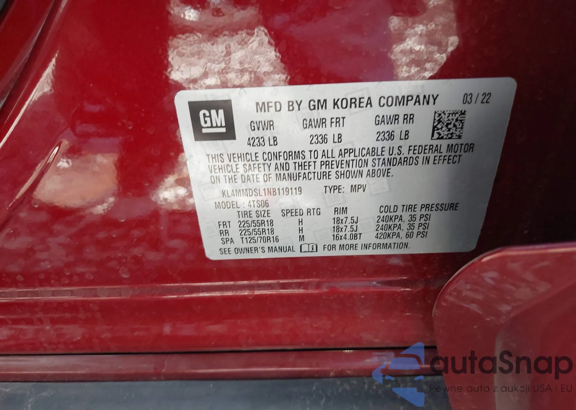 • VIN KL4MMDSL1NB119119