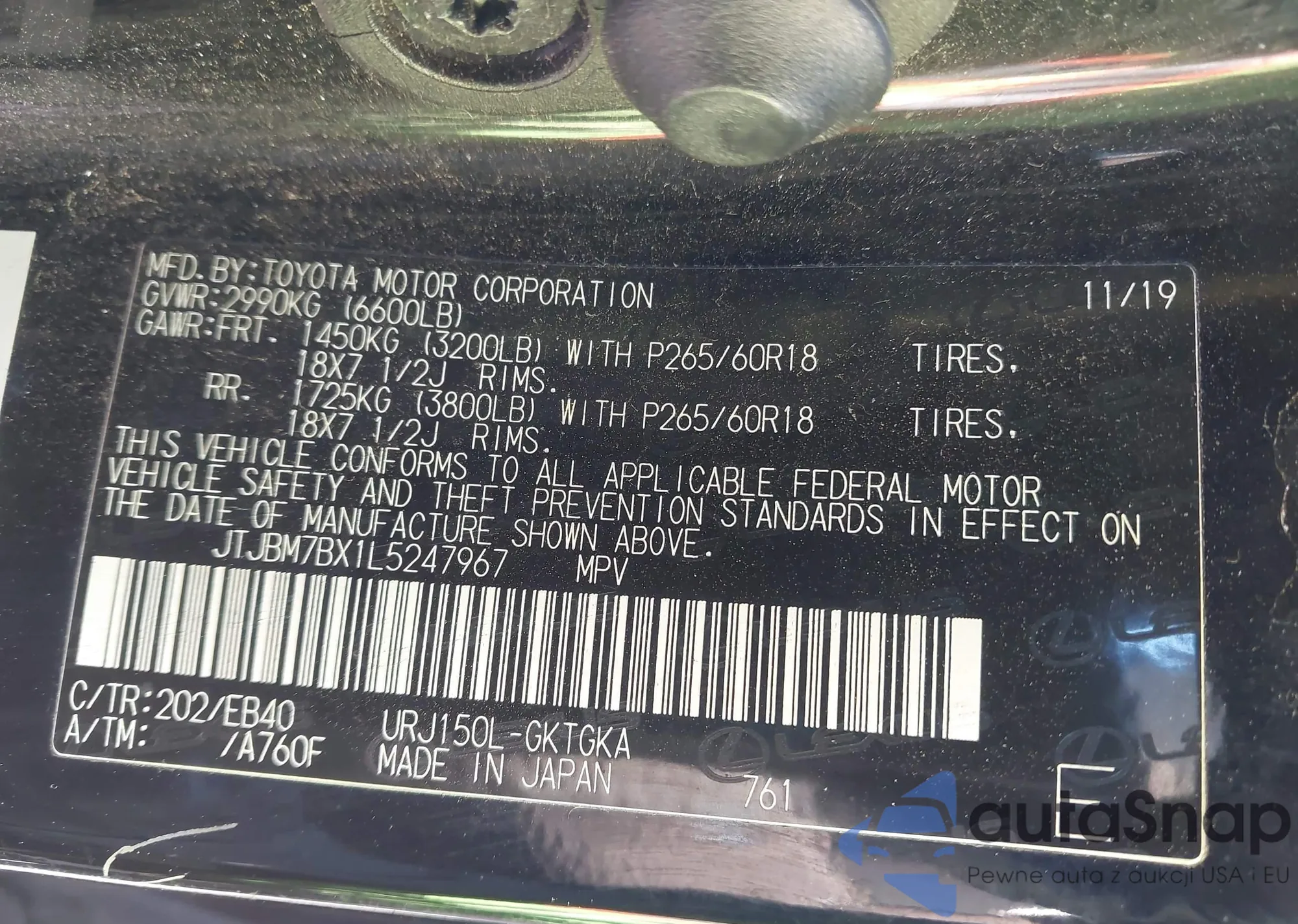 LOT: 41978157 VIN: JTJBM7BX1L5247967