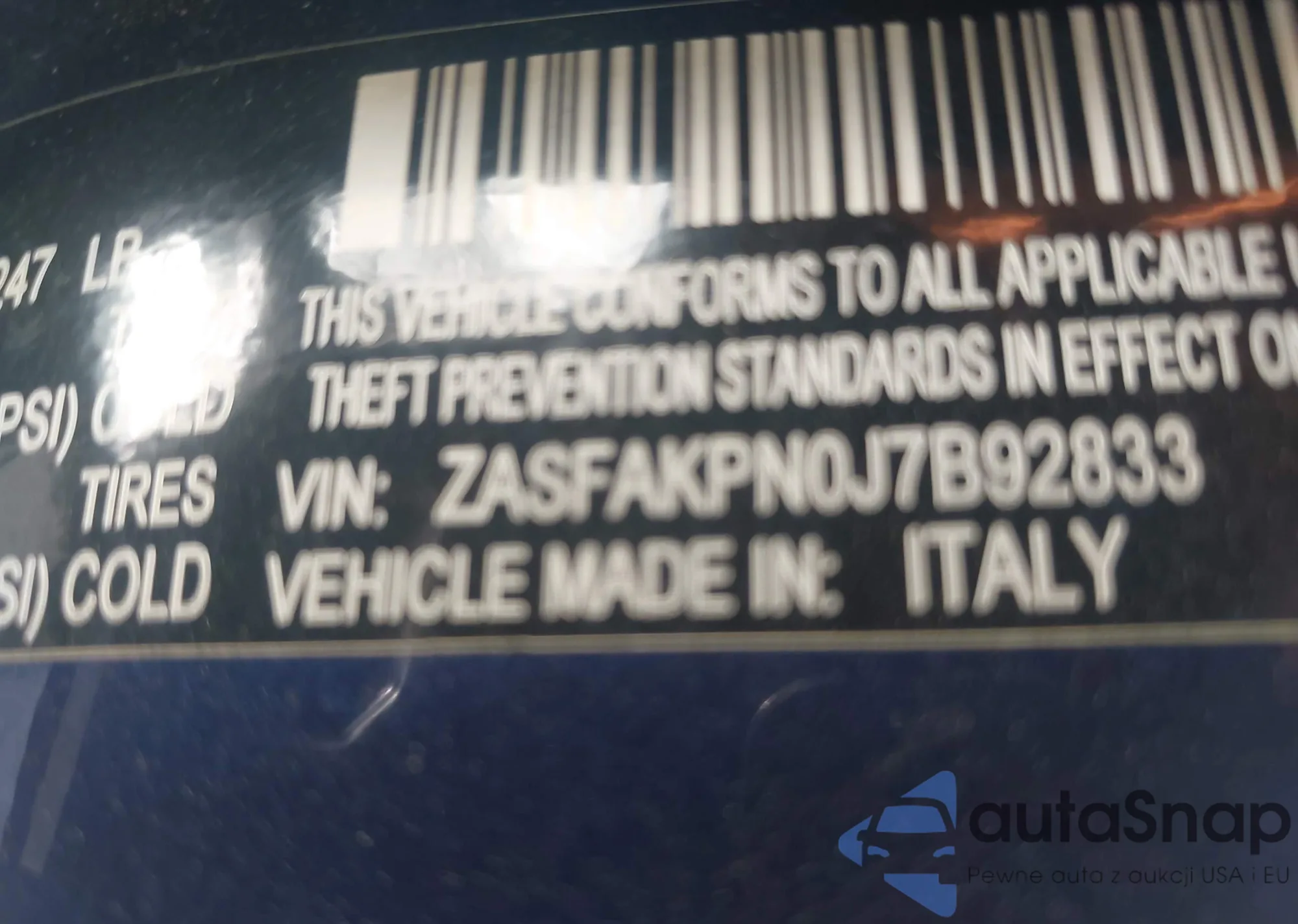 • VIN ZASFAKPN0J7B92833