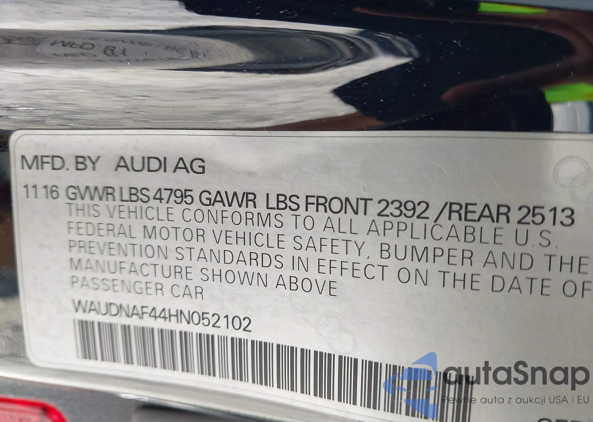 LOT: 42017465 VIN: WAUDNAF44HN052102