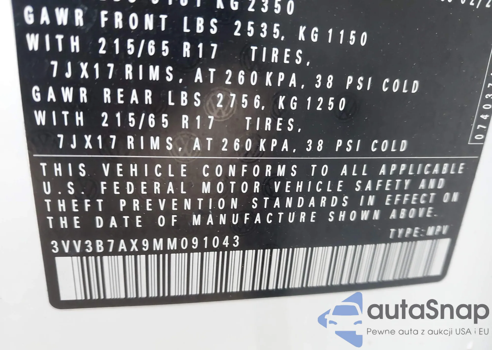 • VIN 3VV3B7AX9MM091043