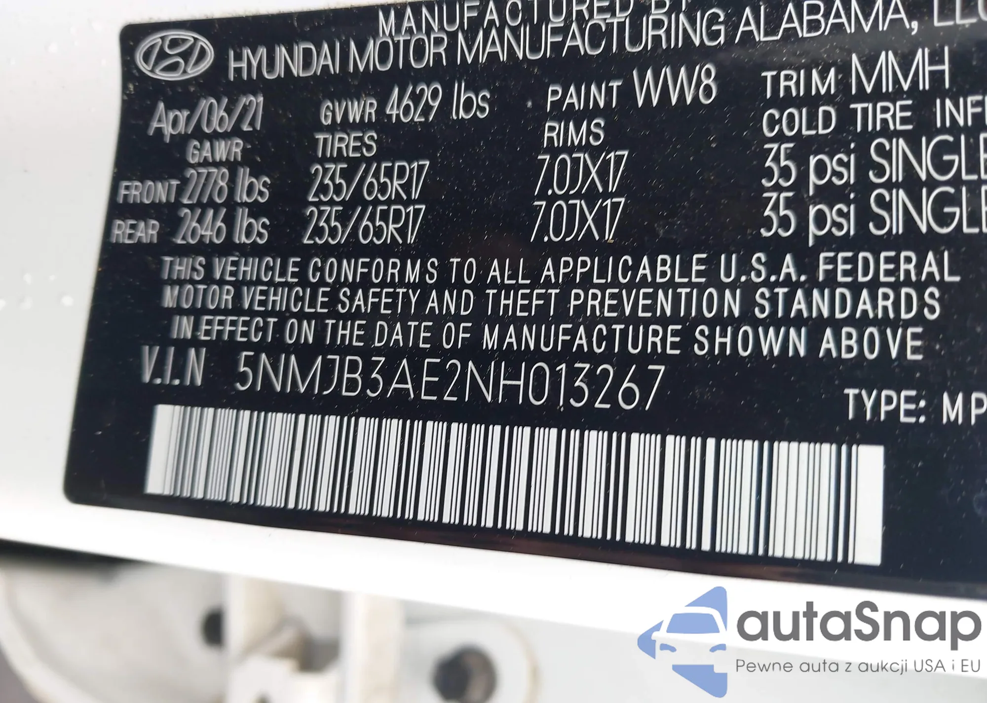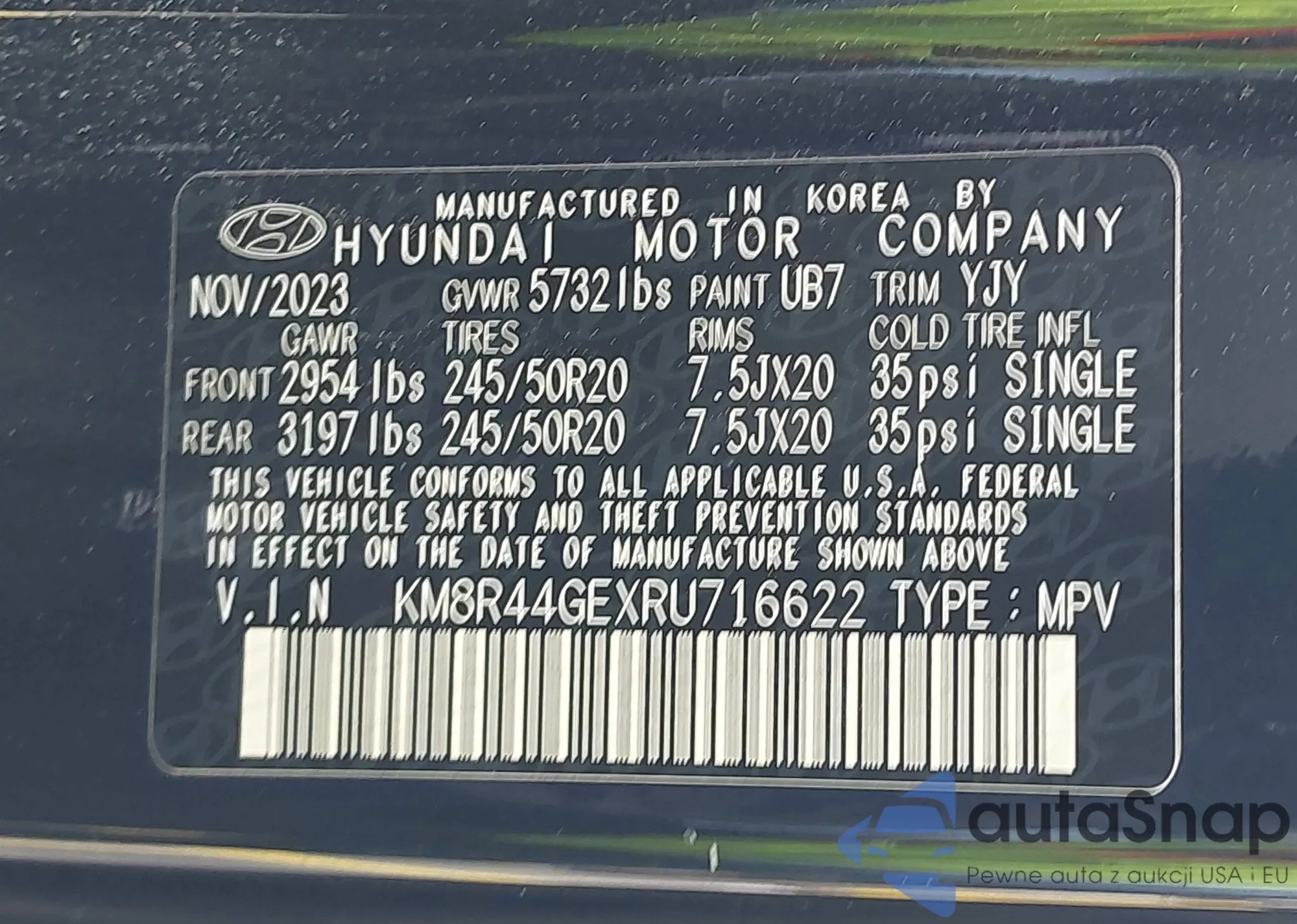LOT: 42117237 VIN: KM8R44GEXRU716622