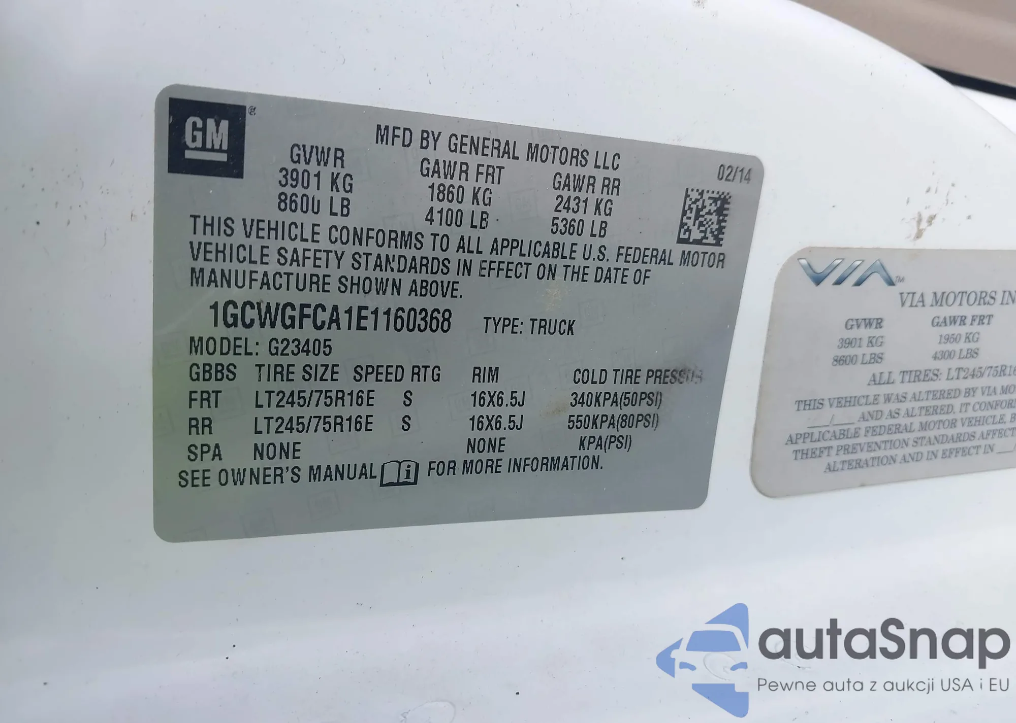 LOT: 42298283 VIN: 1GCWGFCA1E1160368