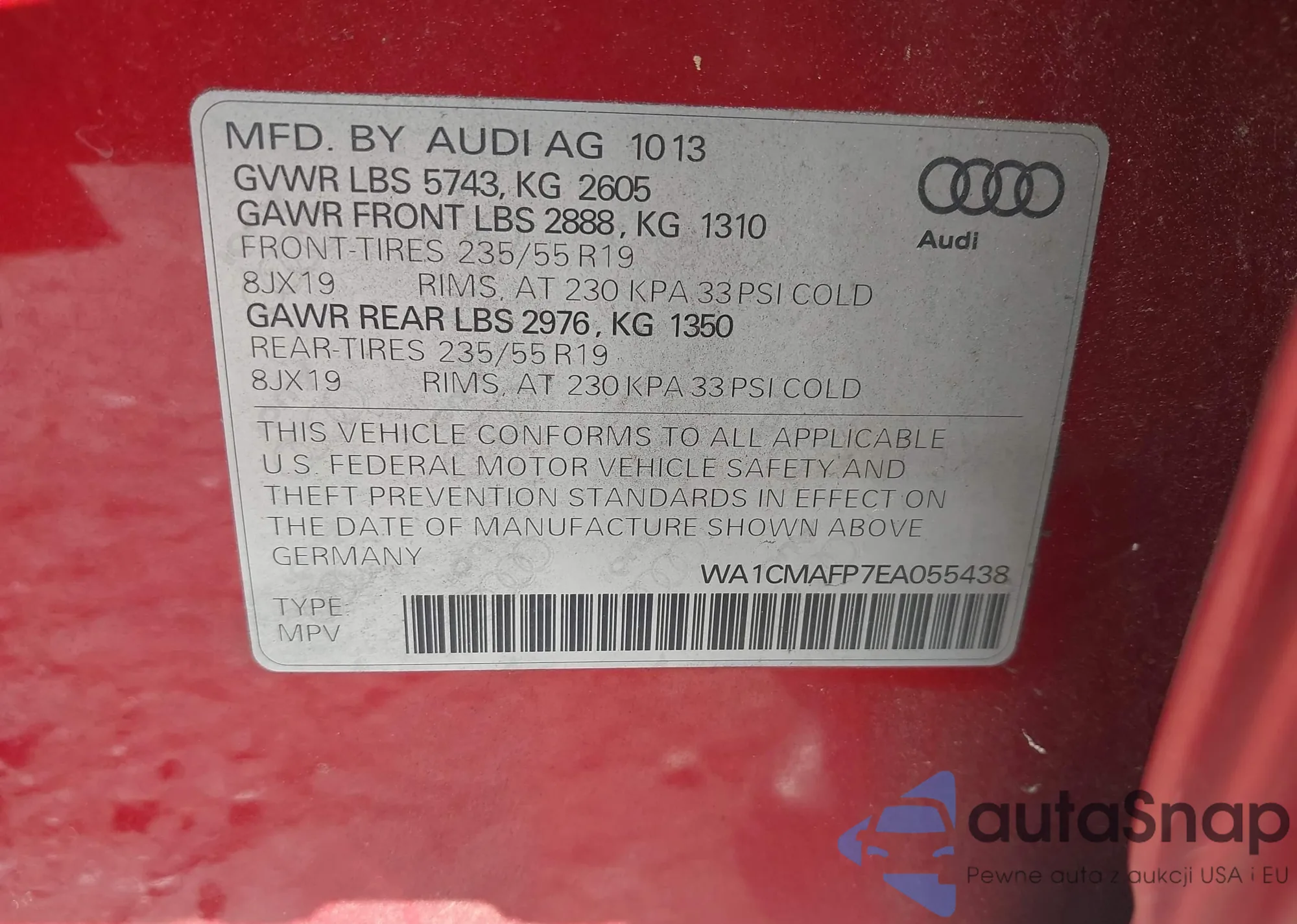 LOT: 41983167 VIN: WA1CMAFP7EA055438